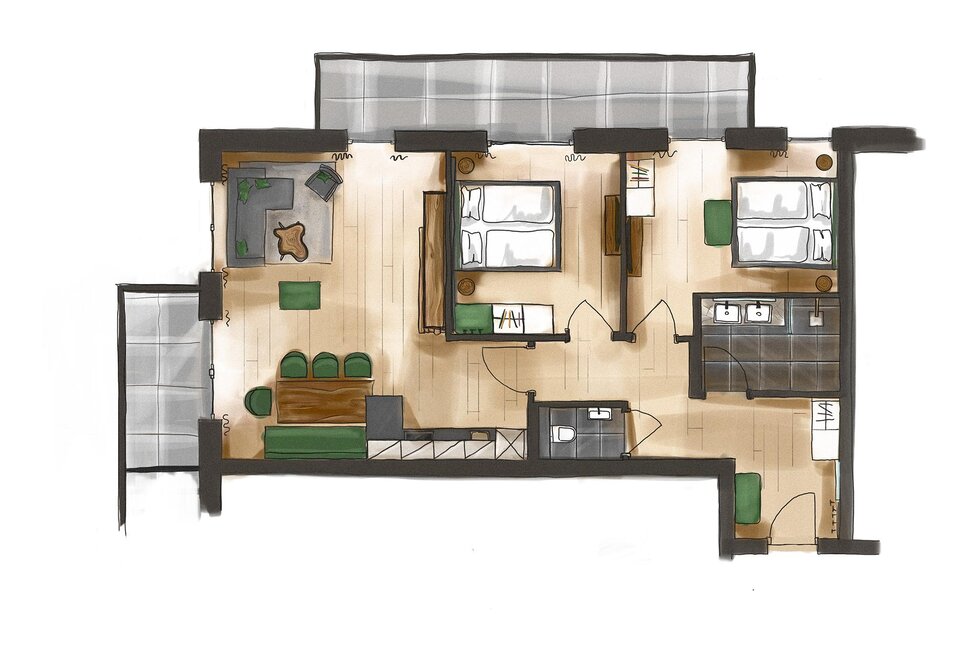 Size 58 m² Occupancy 2 - 4 adults , 0 - 2 children Rooms 3 Bedrooms 2 Room details