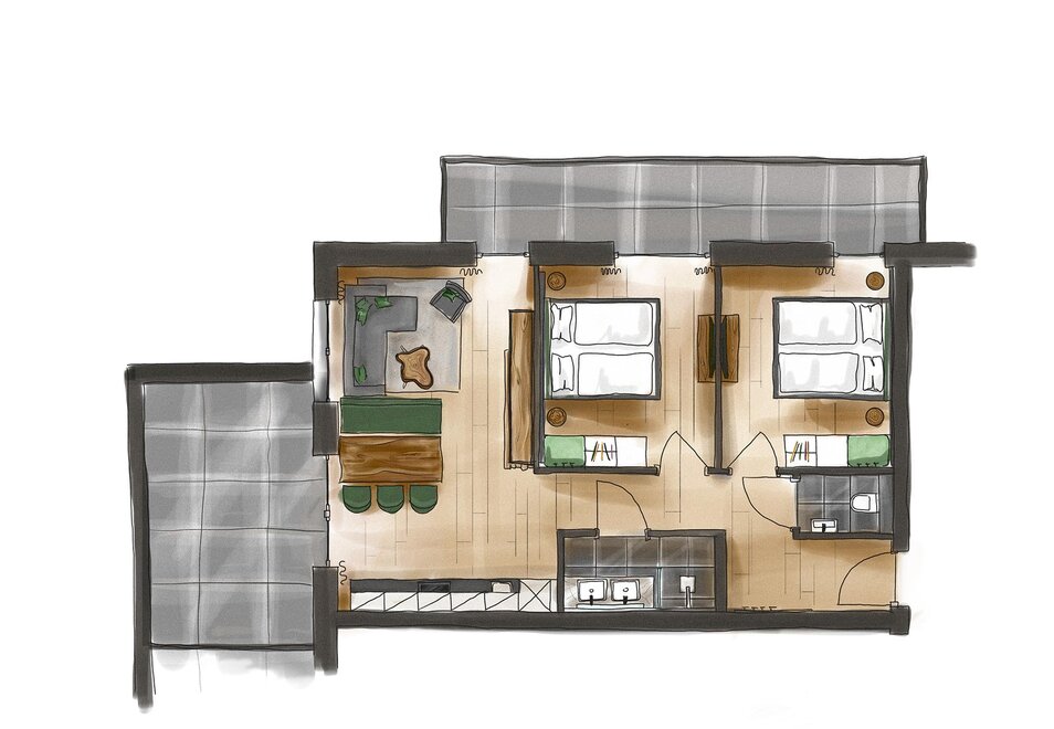 We guarantee our apartments in the Höflehner Premium Gumpen Logde from 15.00 o'clock and ask you to leave it until 11.00 o'clock.