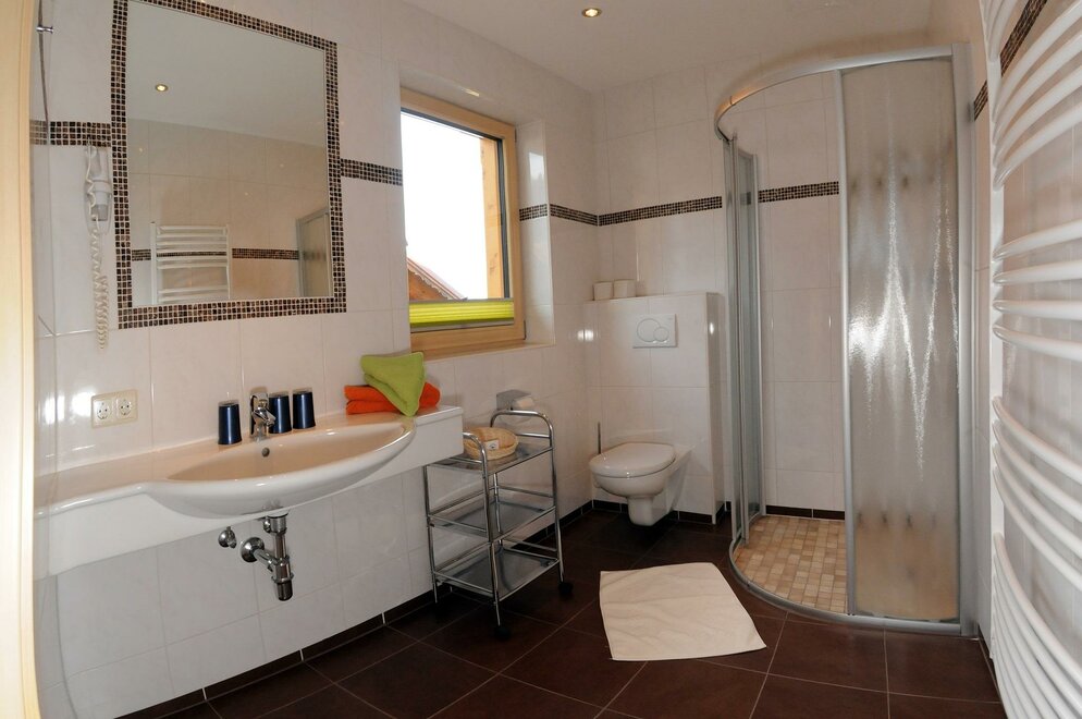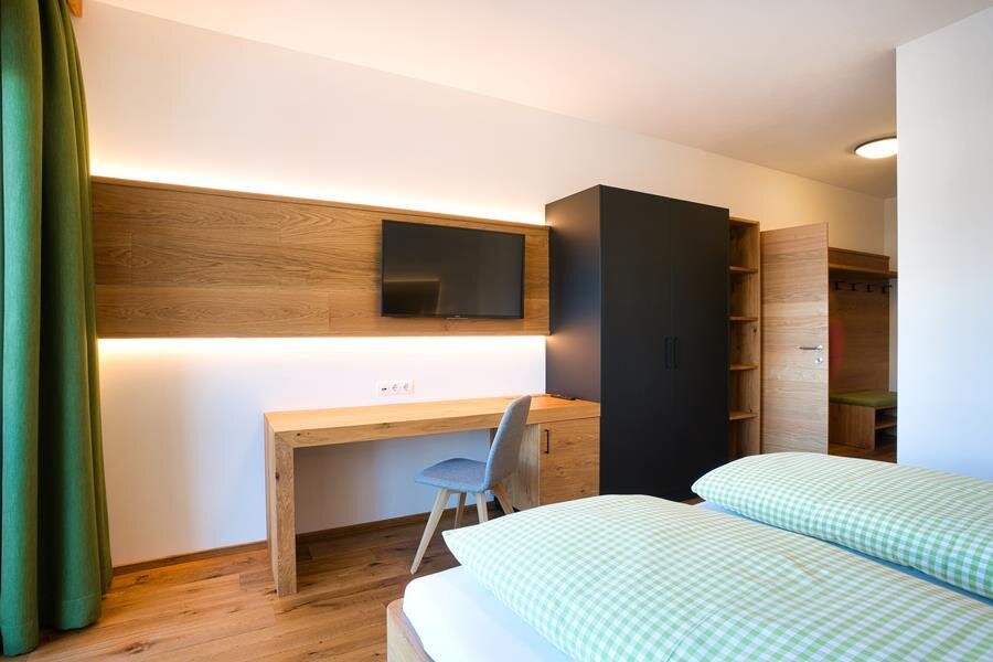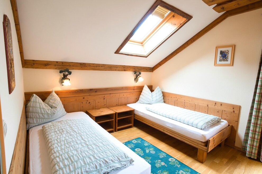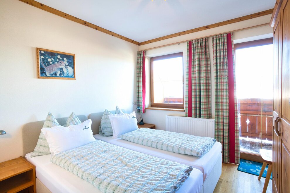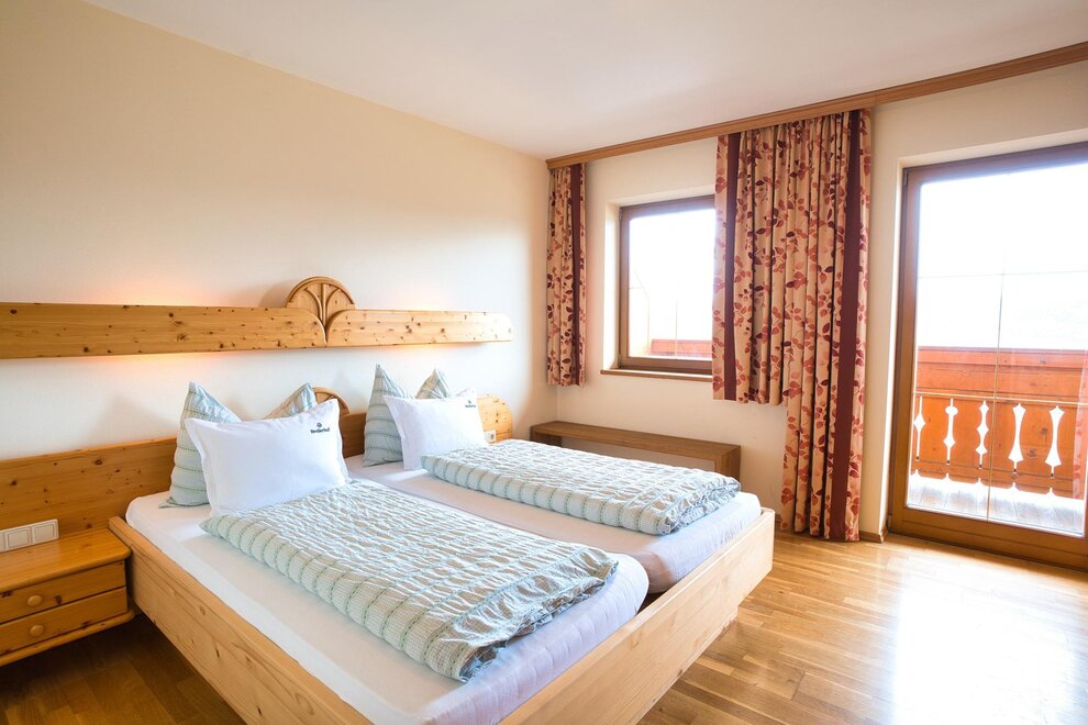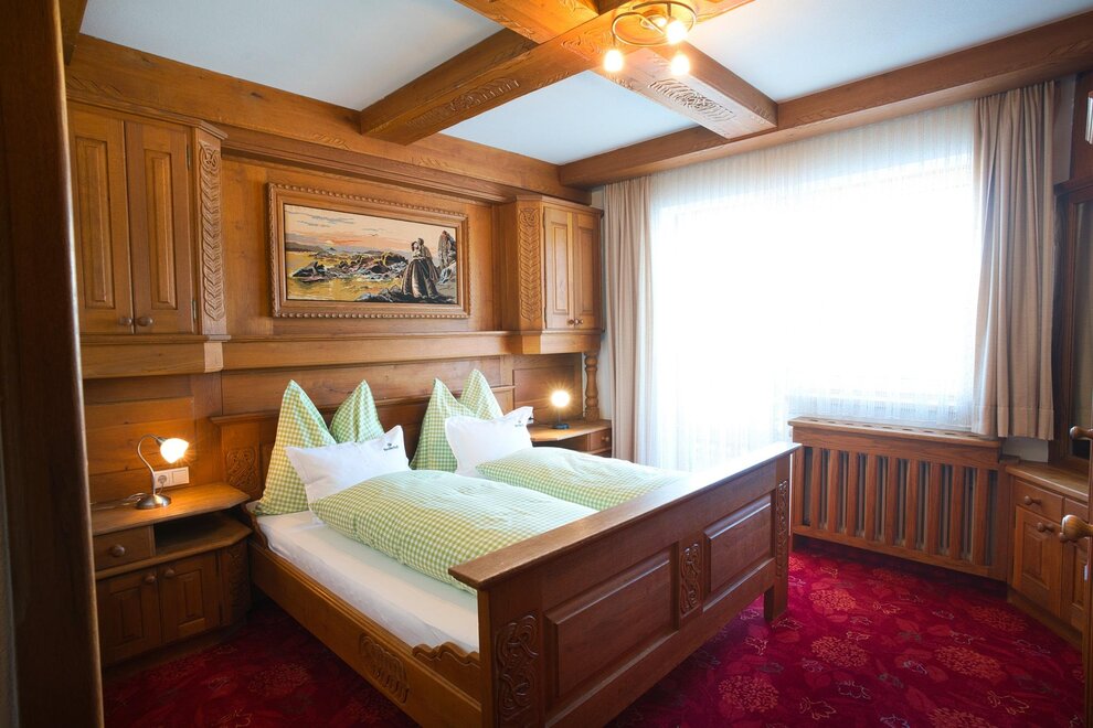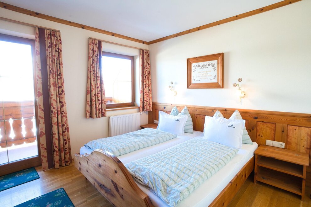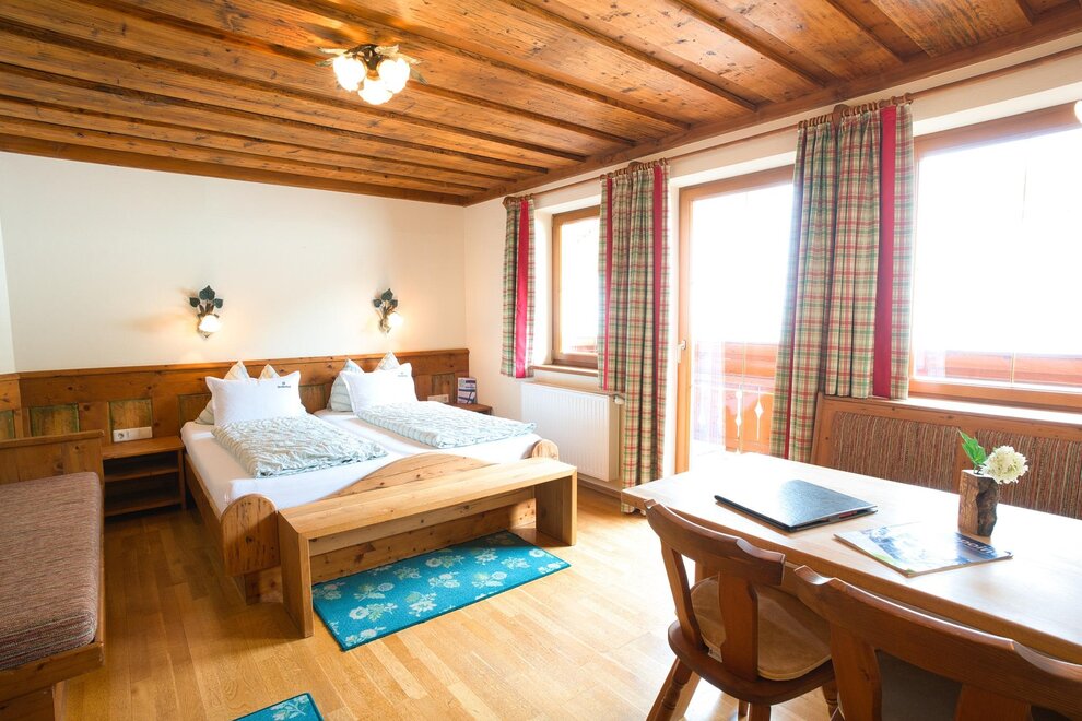 Spacious double room with bright, rustic wooden furnishings, balcony, some with carpet or parquet floors, some with separate toilets, shower, 2 additional beds possible, hairdryer, TV, radio, free internet access
