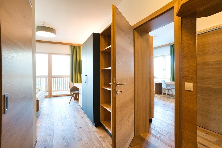 Family Room Dachstein and Ennstal: Rustically furnished family rooms with solid wood furniture, 2 bedrooms (1 parents' bedroom and 1 children's bedroom) with a seating area, shower/WC separate.