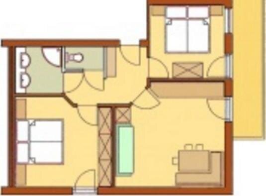 Size 52 m² Occupancy 4 - 6 adults , 0 - 4 children Rooms 3 Bedrooms 2 Room details
