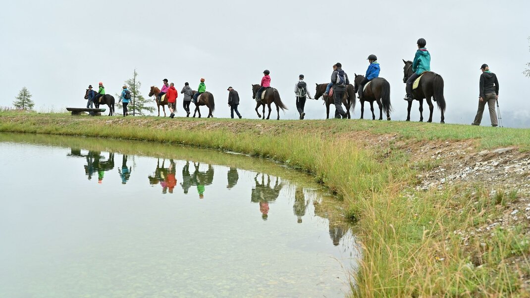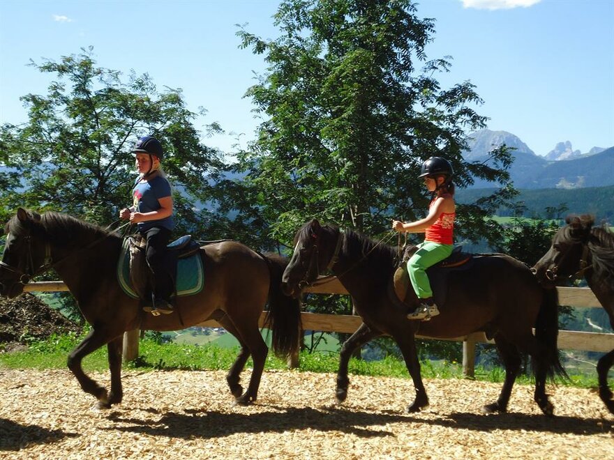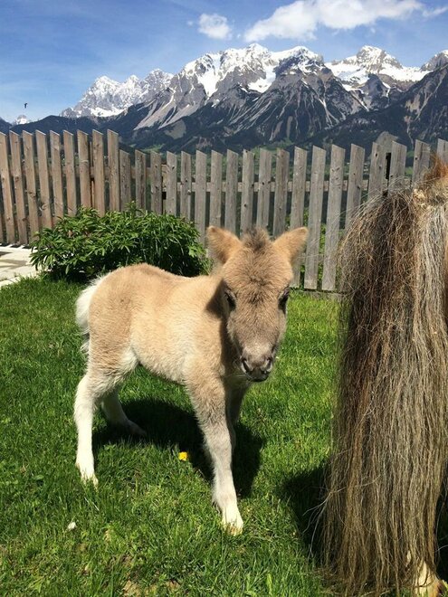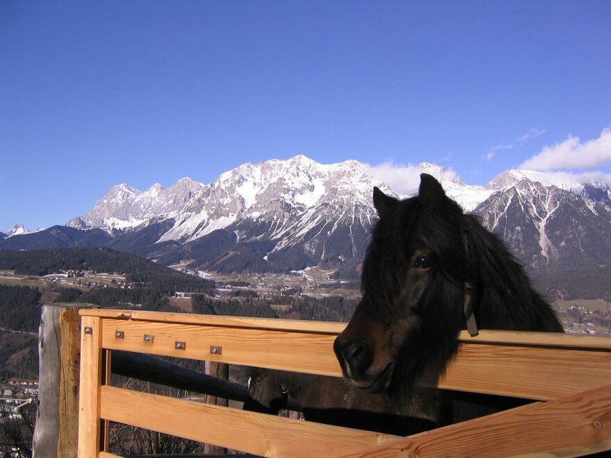 Our ORGANIC farm with many animals to pet is at an elev. of 1130m with a magnificent panoramic view. We have horses, mini ponies, cows, sheep, goats, pigs, rabbits, and cats. Experience daily work in the stables up-close – feed animals and milk cows. Riding with our 8 Icelandic horses in our riding arena and through the dreamy mountain forest. Playground with huge trampoline, go-karts. Hotel comfort, dinner with menu of your choice and salad buffet, traffic-free location, pure nature around the house, hikes to our own hut. Sauna facilities.