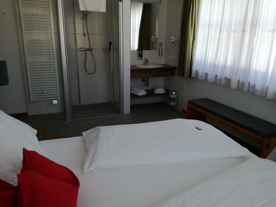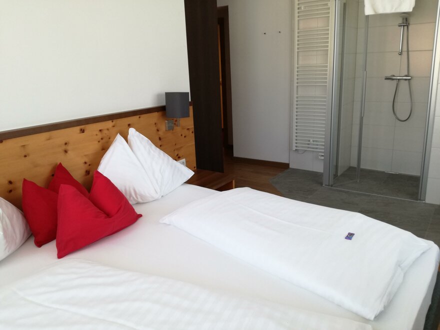 Our double rooms Ennstal are stylishly furnished and feature amenities such as health-promoting pine wood decor, comfortable beds, a modern bathroom, and free Wi-Fi.