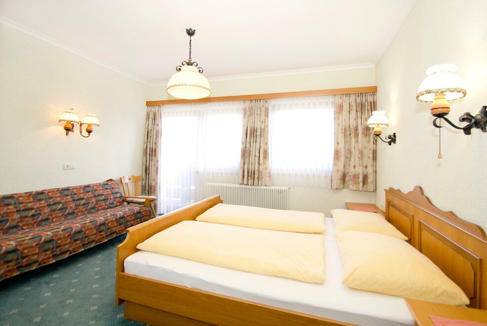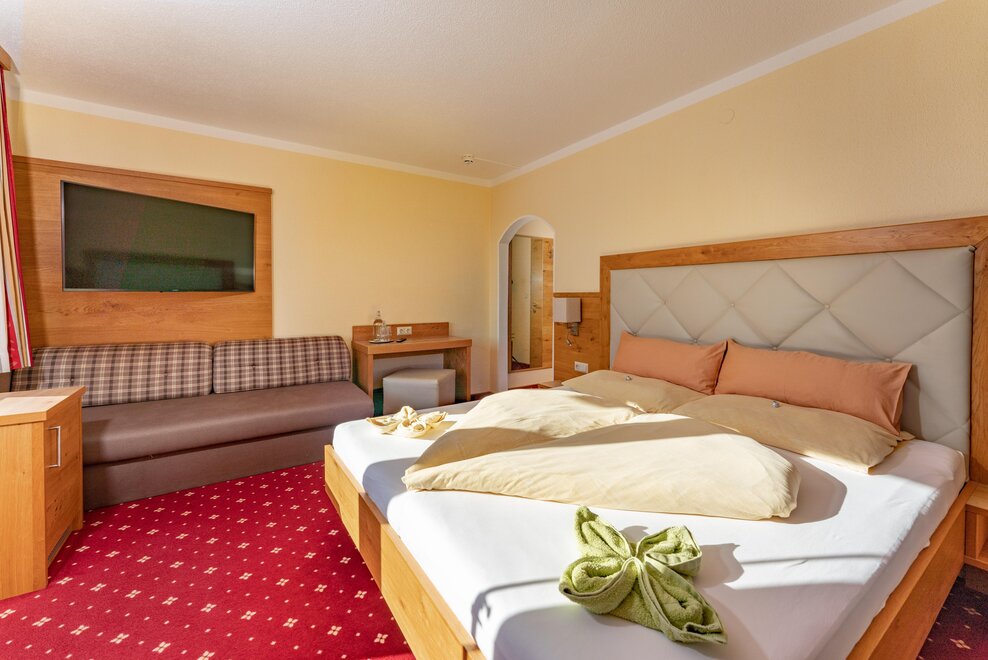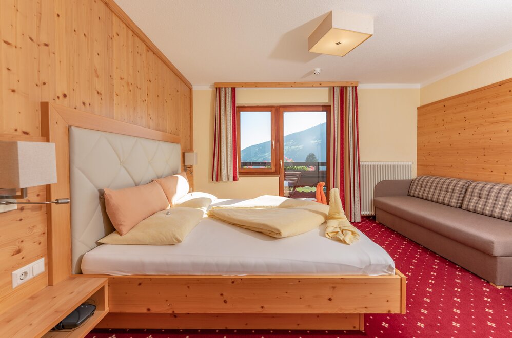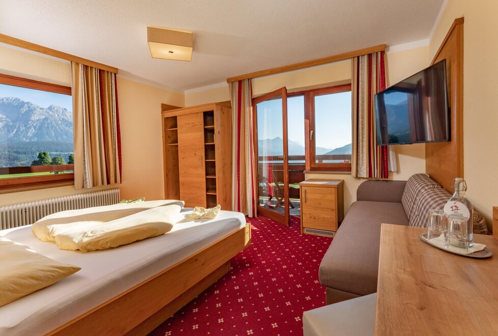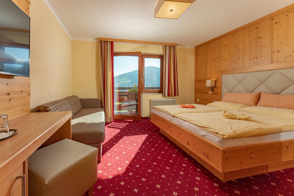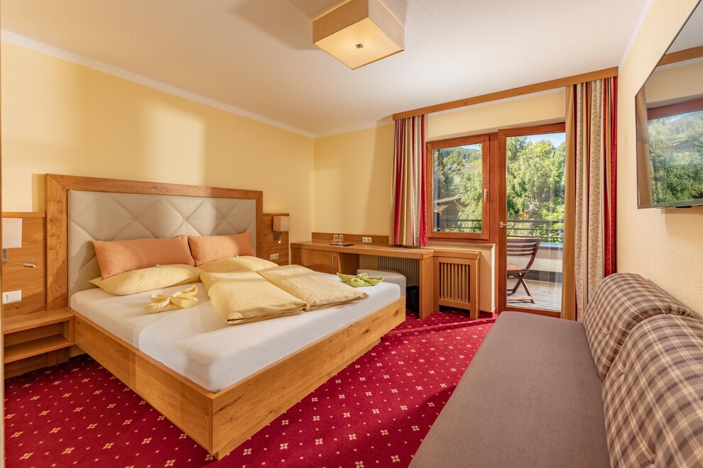 double room in country-style with extra bed, shower / WC, balcony, fridge, room safe, cable TV, hairdryer and radio.