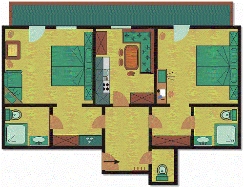 Size 75 m² Occupancy 4 - 8 adults , 0 - 4 children Rooms 2 Bedrooms 1 Room details