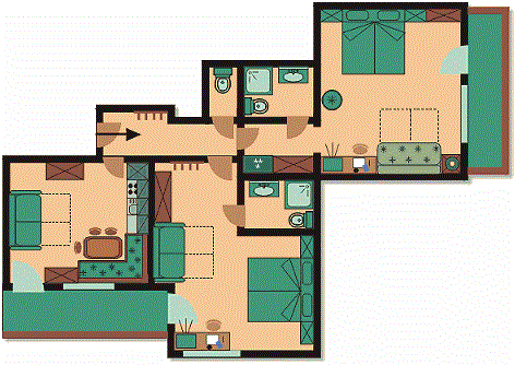 Apartment "Ennstal" well furnished apartment with entrance hall, kitchen, two bedrooms (each with shower / toilet) and balcony.
