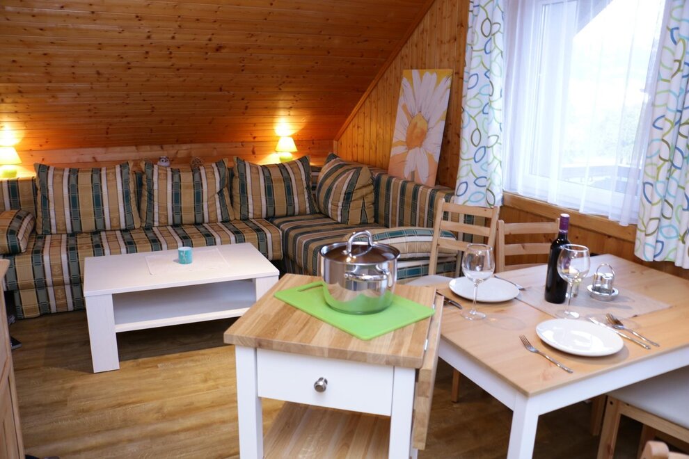 The 29 m² apartment "Alm" offers space for 1 to 2 people. The flat has a living/sleeping area with double bed, fully equipped kitchenette (incl. crockery, electric cooker, oven, coffee machine, etc.), a seating area and satellite TV as well as a storage room. The separate bathroom is equipped with shower/WC. Free W-LAN is available in the apartment. The two app. Leiterwagen and Alm are right next to each other and can therefore be wonderfully combined, e.g. for families with older children, couples of friends or 4 friends who like to travel together. A table can be reserved for your stay on the Kollerhof terrace.