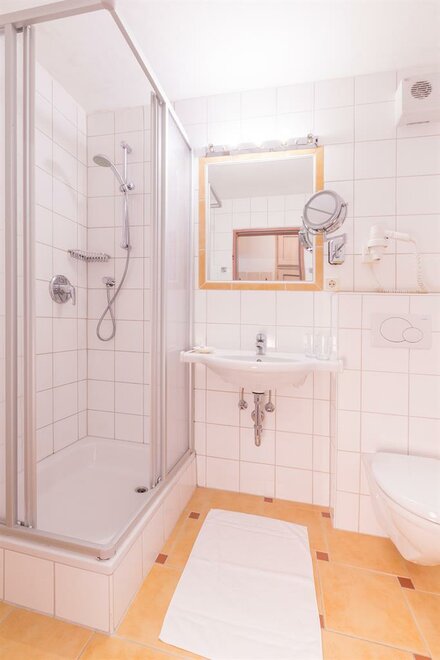 Our single rooms are equipped with shower/toilet, hairdryer, flat screen, telephone, free WIFI and balcony. Moreover there are free parking spaces in front of the hotel.