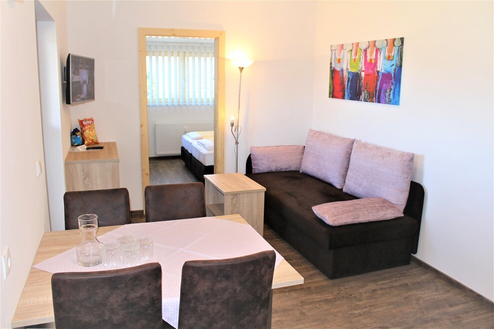hairdryer, WiFi, room/apt. with connecting door, radio, TV, no pets allowed, heater, bathrobe on request, toiletries, balcony, bed linen available, family room/apt., bed linen (non-allergenic), studio, Größe m²: 25