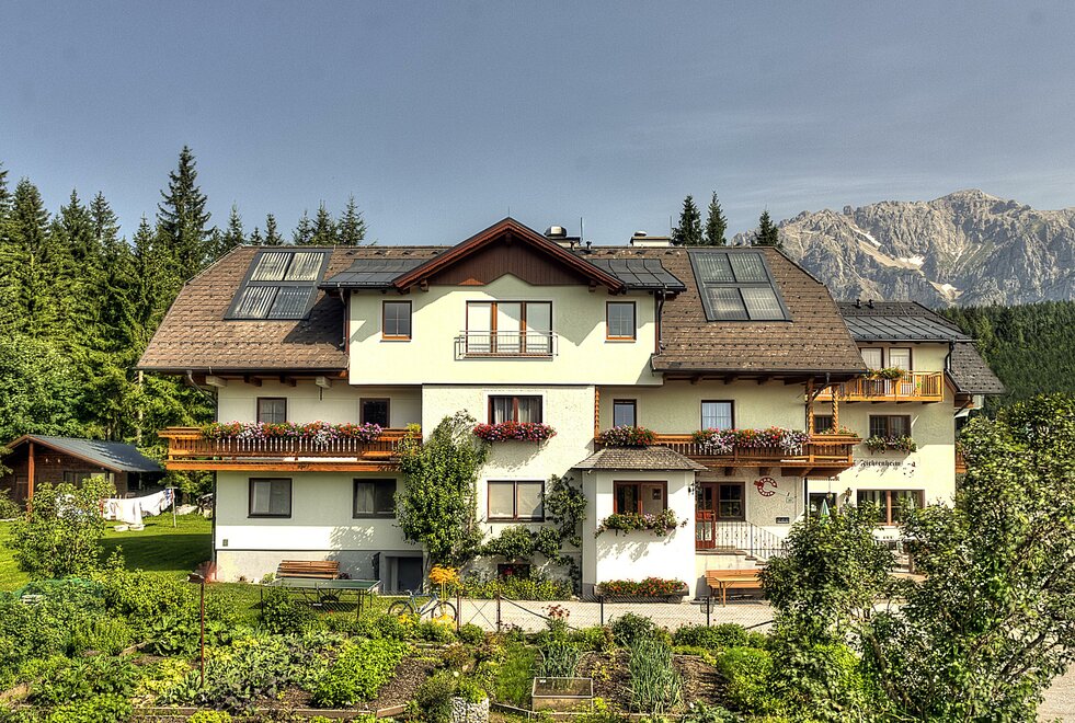 We warmly welcome you to Alpine Hotel Fichtenheim in the Vorberg district in Ramsau am Dachstein! Soothe your soul at the foot of the Dachstein mountains and enjoy your holiday in a family atmosphere. Our Alpine Hotel is situated at the edge of the forest with magnificent views of the Dachstein mountain range as well as the Schladming Alps. The location offers an ideal starting point for hiking in summer and cross-country skiing in winter. Hiking trails and cross-country tracks lead directly past the hotel. Our spacious, smoke-free luxury rooms and suites are equipped with modern facilities including shower, toilet, satellite tv, W-Lan, and promise a comfortable ambience for a cozy and restful sleep. Almost all rooms have a balcony. The south-facing rooms offer beautiful views of the Schladming and Central Alps, while north-facing rooms offer a direct view of the Dachstein mountains. A morning in Fichtenheim begins with a healthy and plentiful breakfast buffet; in the evening you can choose from different 3-course menus with salad buffet. We highly value quality and variety. In our restaurant, we serve traditional Austrian and Styrian specialties prepared with natural, local products. On warm summer Ramsau evenings we host relaxed barbecue evenings with grilled meats and freshly caught trout for our guests. Cold beer and selected wines from our wine cellar are also served. To keep your children entertained, a large play area with Slackline, trampoline, jungle gym and slide, playhouse, and petting zoo are available on the hotel property. Your children can also enjoy pony rides at the neighboring horse farm! Our sauna area completes your relaxing stay at Alpine Hotel Fichtenheim. In Ramsau am Dachstein you can experience hiking, climbing, mountain biking and horseback riding. You can also enjoy all of the benefits of the Schladming-Dachstein Summer Card, your ticket to over 100 top vacation experiences and over 100 extra bonus opportunities around the region. We are happy to help you plan your hiking tours and can also organize guided hikes for you. Ramsau is home to numerous ski lifts for sun-seekers, beginners, and families. Ramsau is part of the Ski Amade region, which offers over 760 kilometers of slopes in 25 locations. The free Ski Bus takes you from the nearby bus stop to any ski hill in Ramsau am Dachstein and Ski Amade, including popular ski resorts Planai, Reiteralm and Hauser Kaibling. We look forward to your visit! Tritscher family