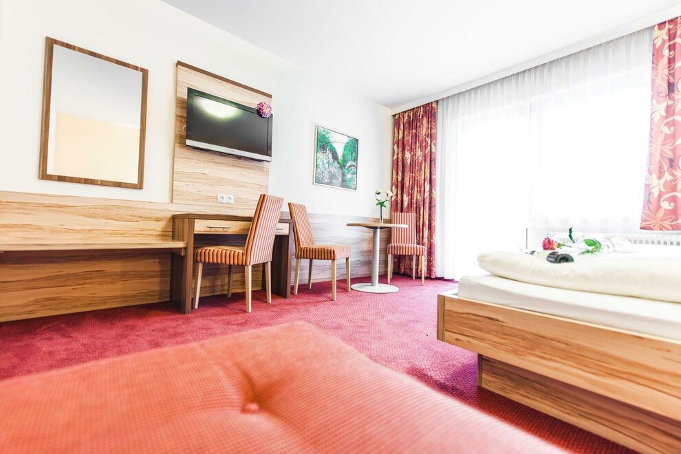modern rooms with shower/bath and WC, flatscreen TV, free W-Lan, room safe, balcony