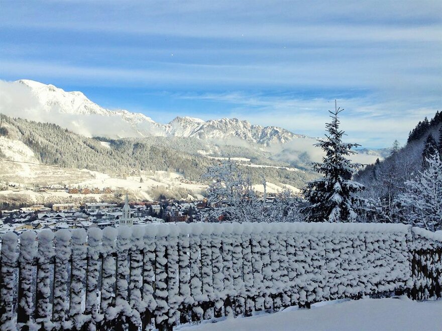 Our house is about 50 vertical metres above the mountain town of Schladming, in a quiet setting with views of the Dachstein Massif and Schladming. Within convenient reach of the ski lifts, the town centre and, in summer, trailheads for hikes. In the winter season: daily transfer to the skilifts with our hotel taxi. Our guest rooms feature shower or bath, WC, SaTv, some with balcony, and telephone. sauna, quiet room, tanning bed and guest lounge with billiards and darts are available for our guests. Guests can also look forward to a culinary pamering incl. brkfst. buffet and selection of 3-course dinner menus. In summer 1x grill night, in winter 1x farmhouse buffet or pork-hock feast.