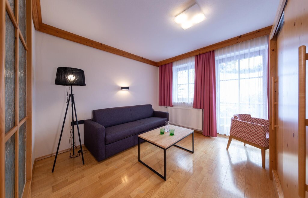 bed linen available, radio alarm, rustic furniture, non-smoking room/apt., separate bedroom/living room, balcony furniture, balcony (in some rooms), heater, WiFi, room/apt. (non-allergic), towels available, safe, hairdryer, bathrobe, no pets allowed, desk, anteroom, family room/apt., bed linen (non-allergenic), radio, closet, telephone, Größe m²: 35, no carpet, internet connection available, terrace (some rooms), cable TV, toiletries