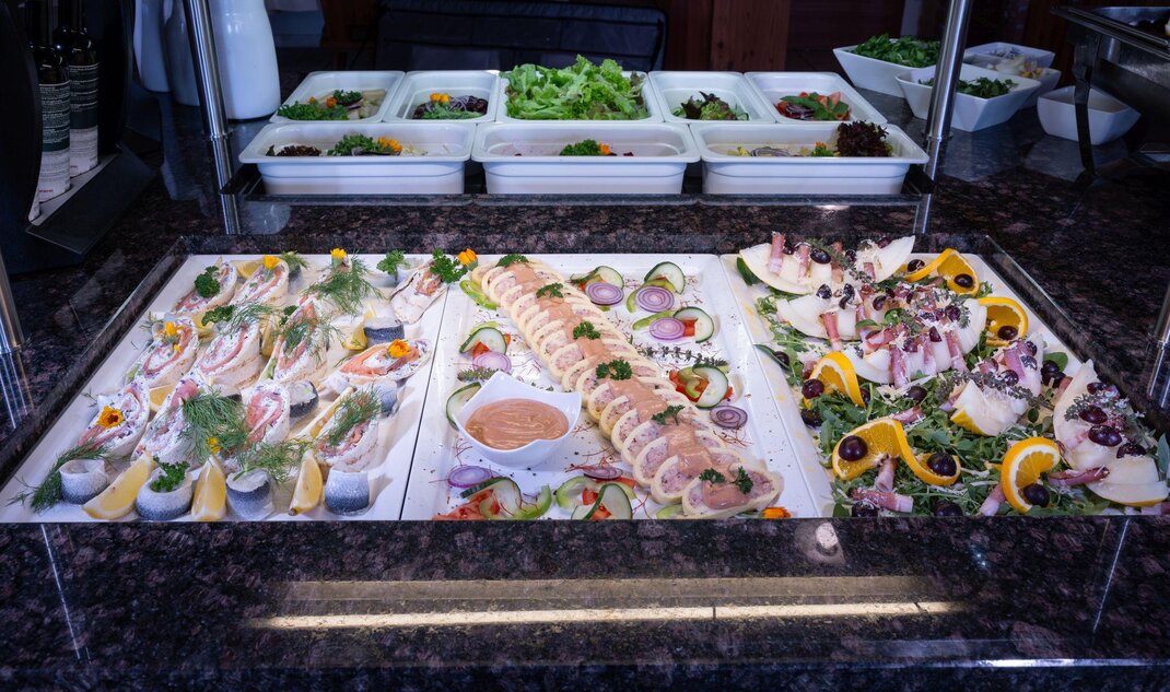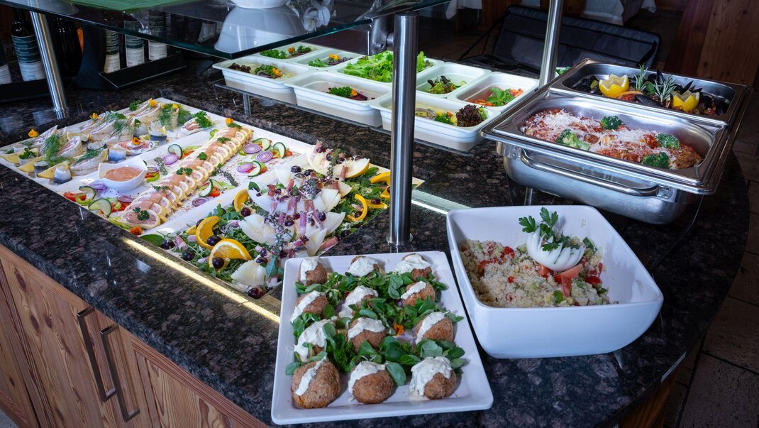 - Appetizer buffet as well as crisp, fresh salads with tasty dressings and different vinegar-oil varieties