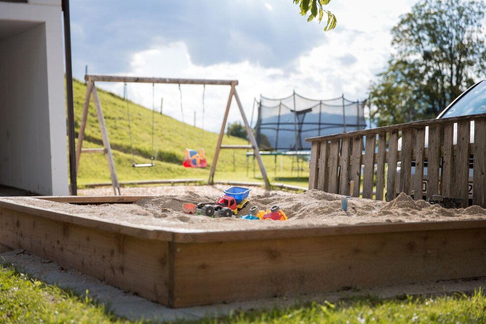 - Children's play area with trampolin, swing, sand box, big play ground