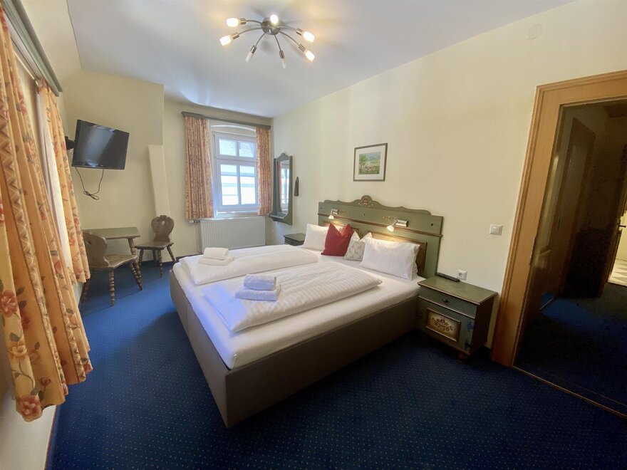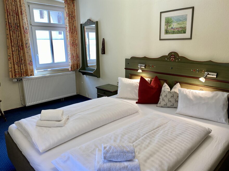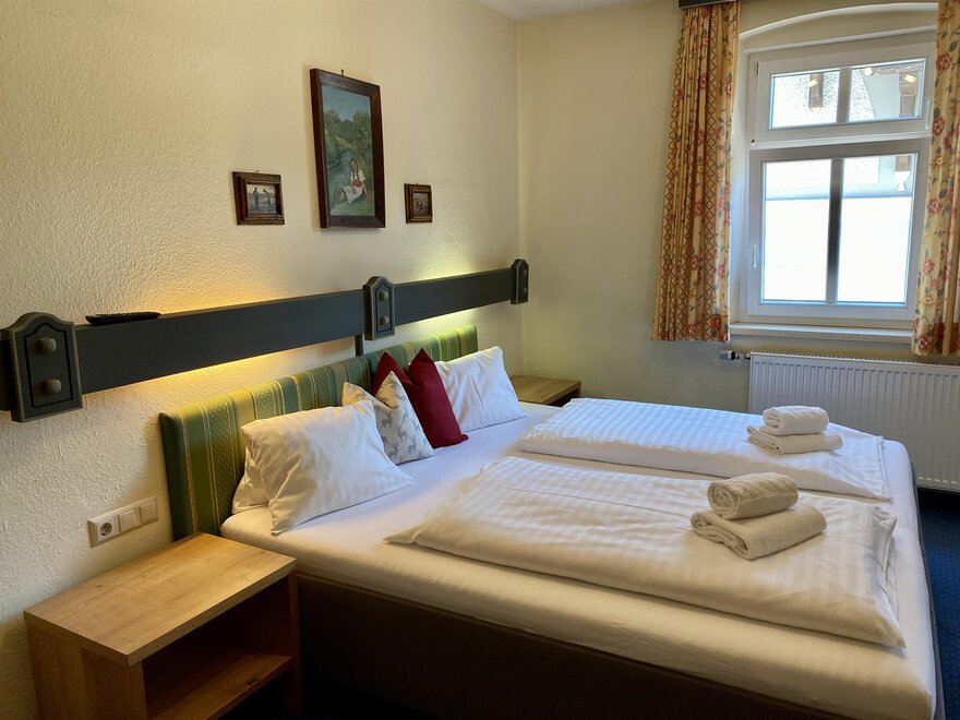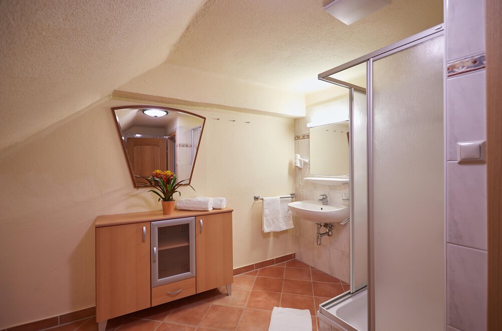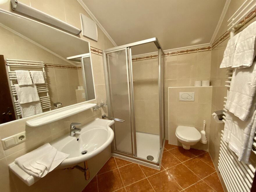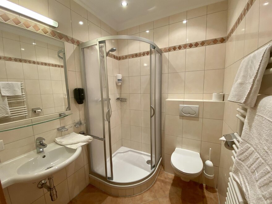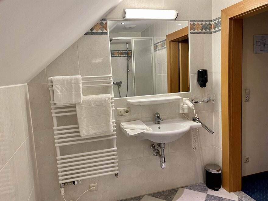 Our tower rooms are located in our Stammhaus. They are equipped with shower, toilet, hairdryer, toweldryer, cosmetics, cabel-TV and free W-Lan and balcony. Some rooms with balcony and other rooms with terrace. Grander-Water technology!
