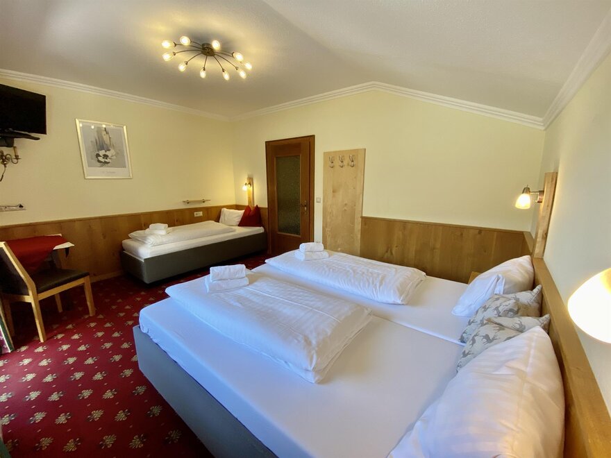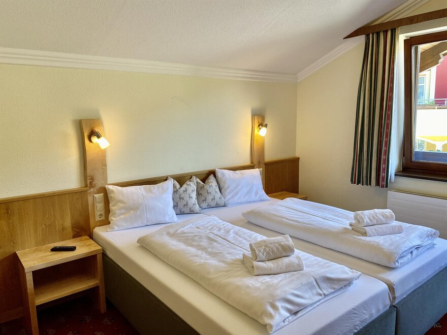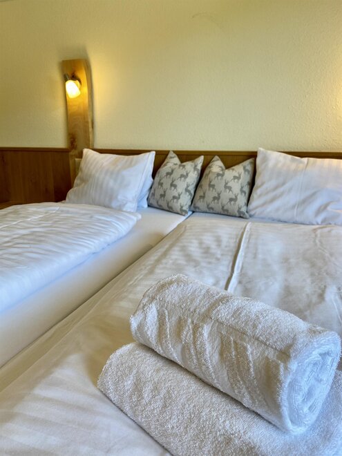 Our family rooms have 2 separate bedrooms and one bath. They are equipped with shower, toilet, hairdryer, toweldryer, cosmetics, cabel-TV and free W-Lan. Grander-Water technology!
