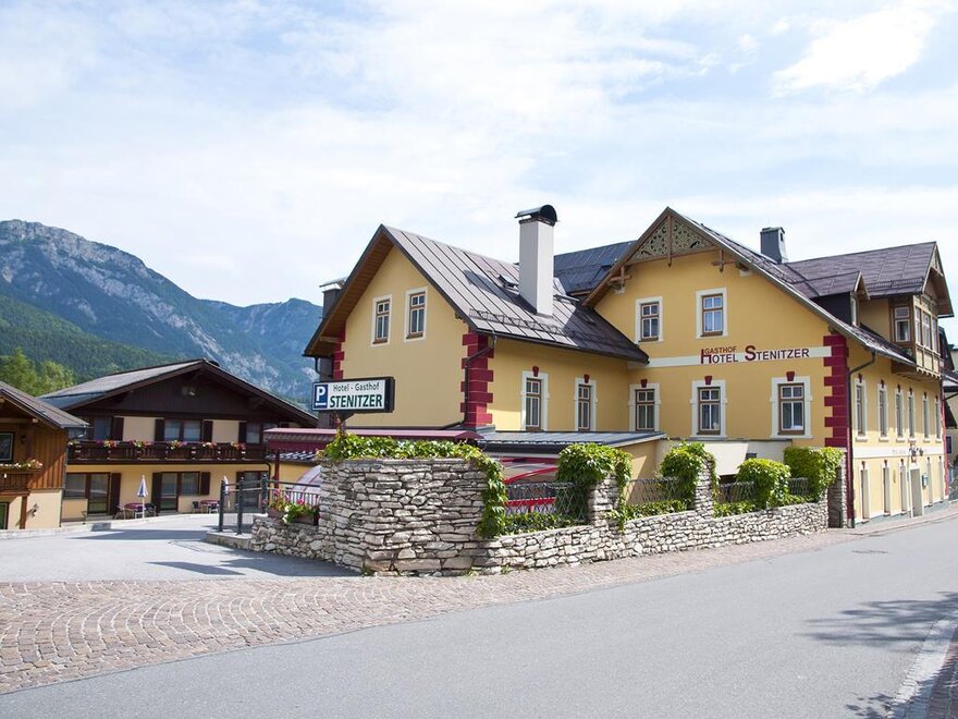 Follow the main road "Ennstalbundesstraße B320" to Haus im Ennstal. At the center of the village house you look for a yellow building with the inscription "Hotel Stenitzer". Welcome!