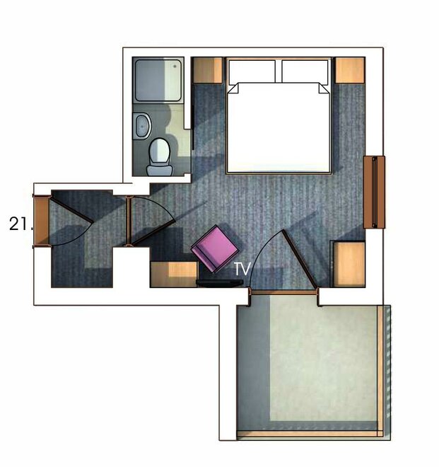Size 23 m² Occupancy 1 - 2 adults , 0 - 1 children Rooms 1 Bedrooms 1 Room details
