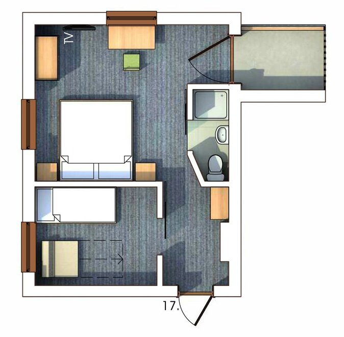 Size 18 m² Occupancy 1 - 2 adults , 0 - 1 children Rooms 1 Bedrooms 1 -