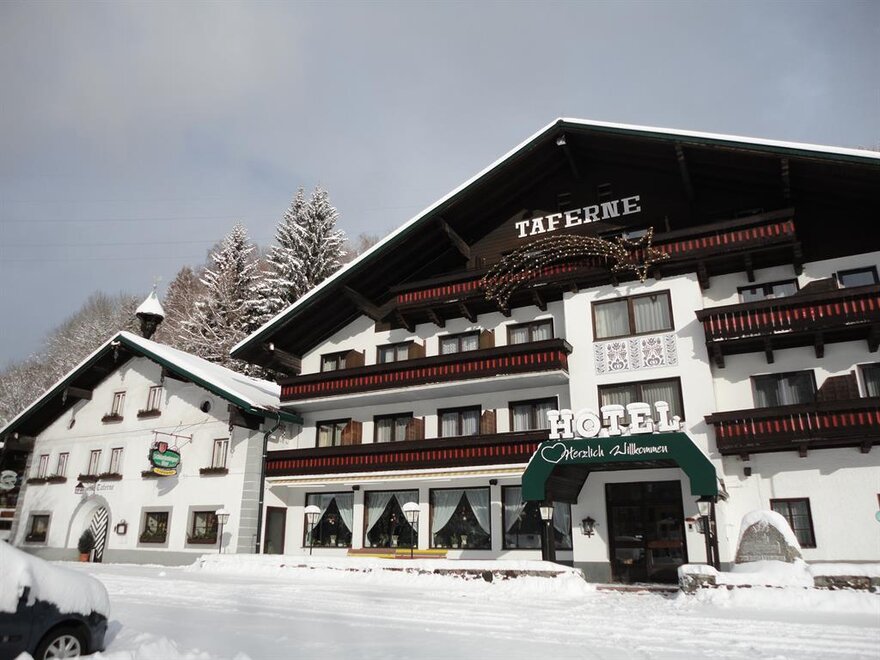 Welcome to the historic Hotel Taferne in Mandling. The small village near Schladming is a geographical curiosity. Mandling lies exactly on the border of the provinces of Salzburg and Styria and is a divided village. Our Hotel-Restaurant Taferne is therefore situated in the middle of the recreation and hiking area "Schladming-Dachstein" as well as in the extensive area "Ski amadé" in summer and winter. The parking place directly in front of the hotel offers enough space - also for buses - and can be reached comfortably and without snow chains.