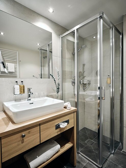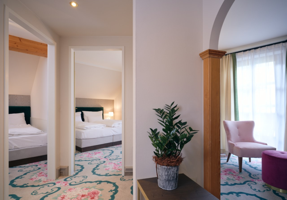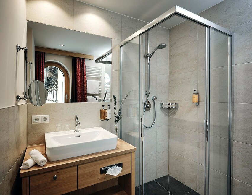 The single rooms in hotel Pichlmayrgut are up to 17m² and they are fitted with TV, telephone, safe, minibar, bathrobe and bathslippers