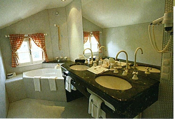 Spacious suite with garden view. Equipped with a bathtub and shower, double sink, separate toilet.