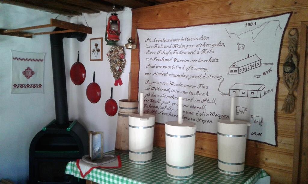 We are making butter, buttermilk, curd and five different kinds of cheese and we are selling these products at our alpine hut. You can try these specialties with self made bread or taking home. If you are tired of eating or from drinking our home-made schnapps you can sleep in our large room (for a maximum of 7 persons) in the barn over the cows next to the haylage or in a room for 3 persons.