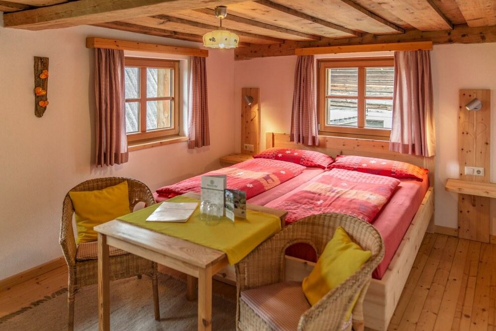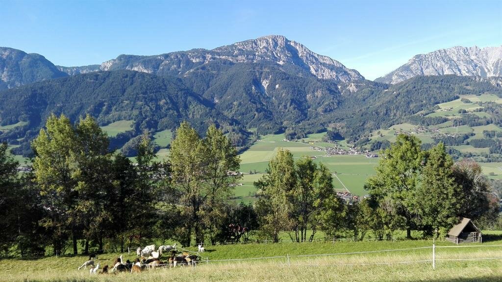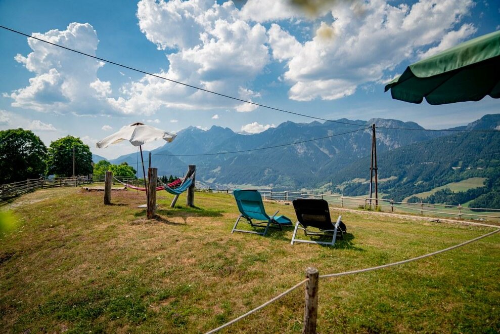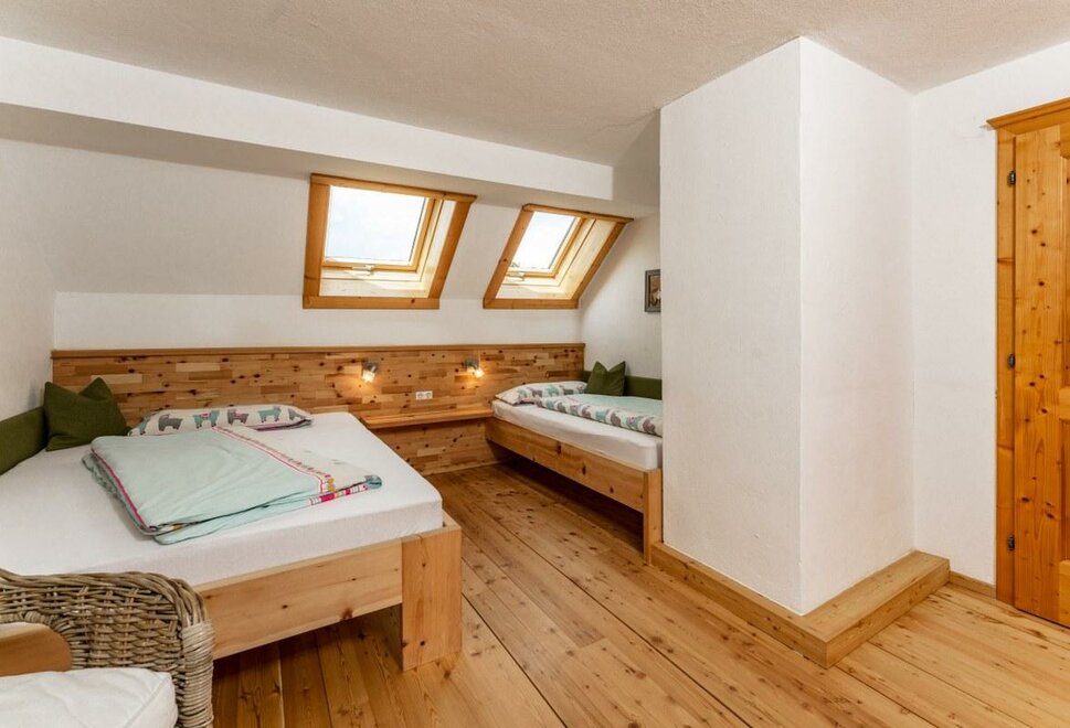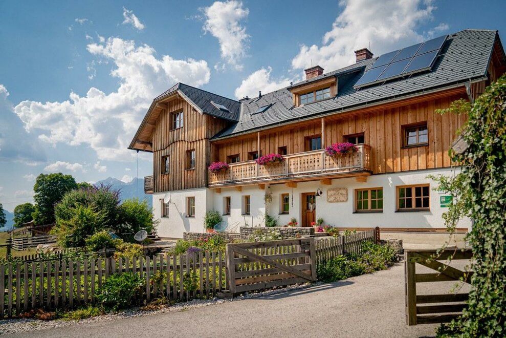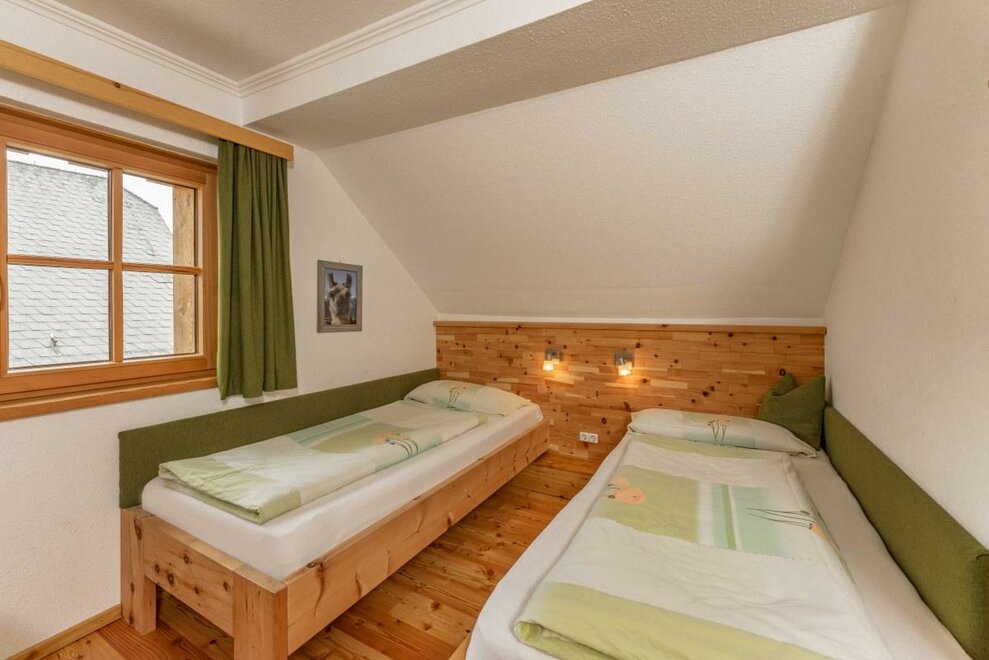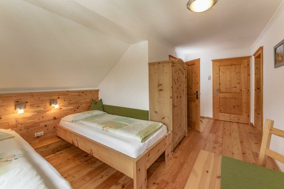 Our cottage Klausnerhof is equipped with a kitchen, a large sitting room and the two double rooms "Stoderblick" and "Dachsteinblick", the four bed room "Waldblick" (double bed and bunk bed) and the family room "Grimmingblick" (2 separate bedrooms). All rooms are equipped with shower, toilet and hairdryer.