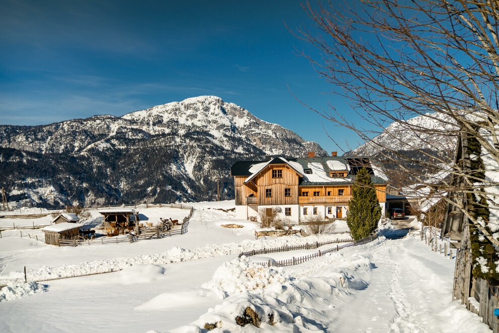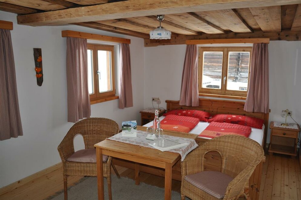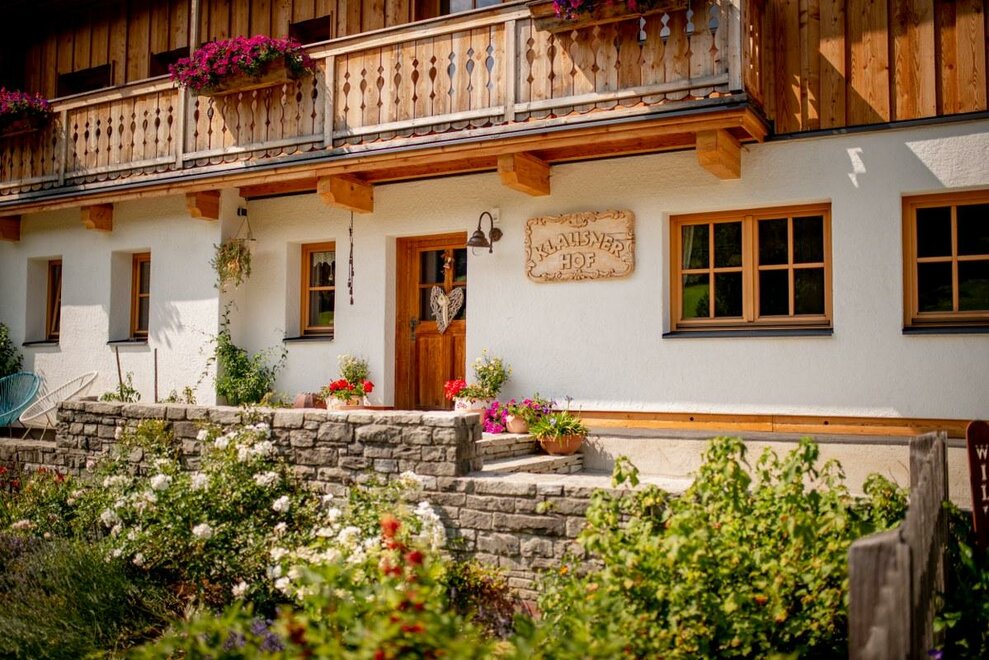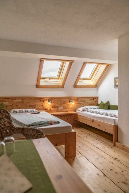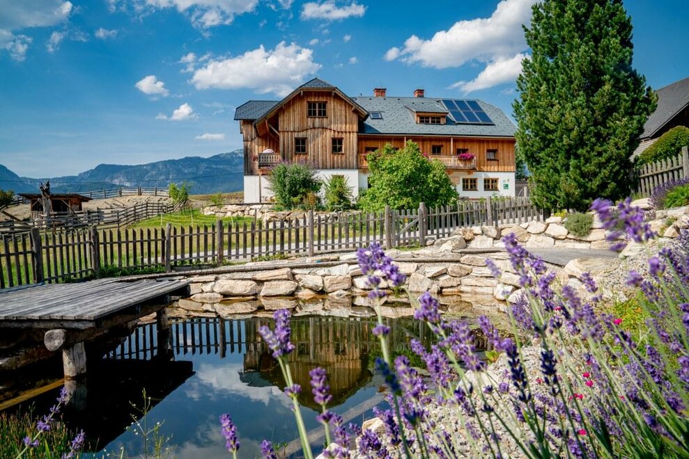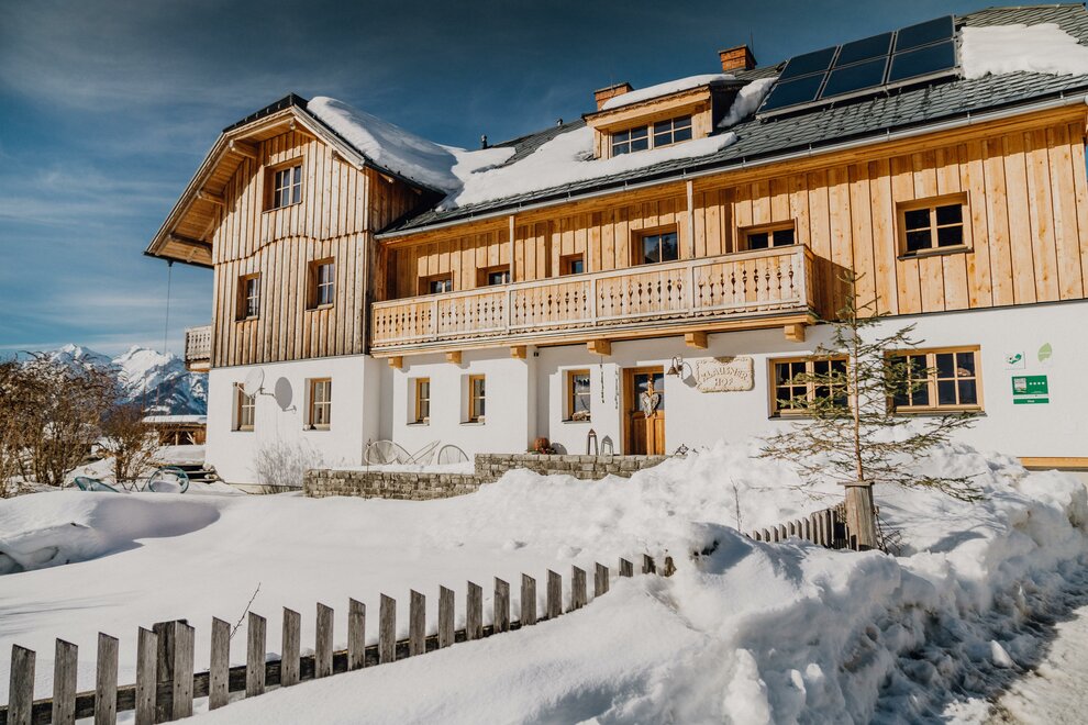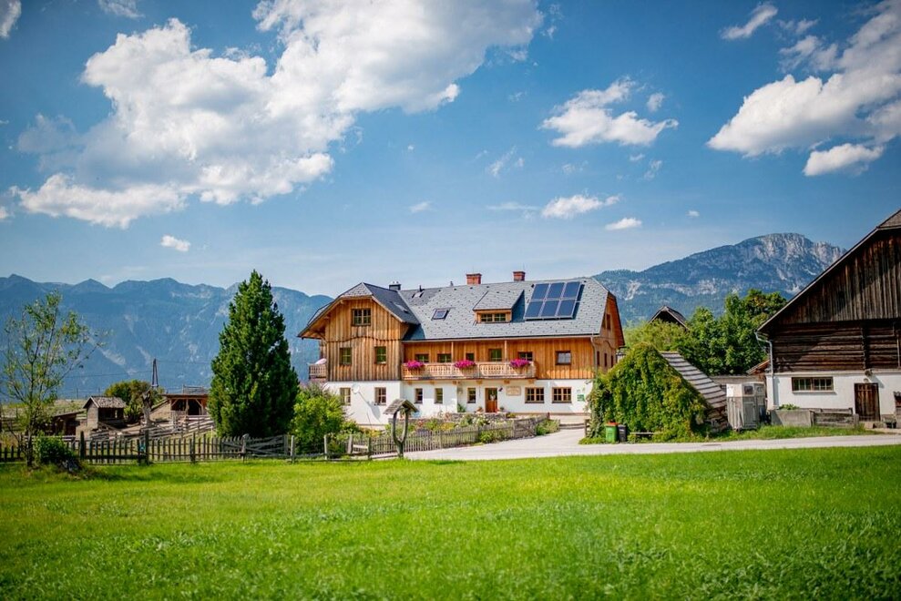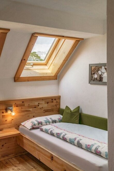 Our cottage Klausnerhof is equipped with a kitchen, a large sitting room and the two double rooms "Stoderblick" and "Dachsteinblick", the four bed room "Waldblick" (double bed and bunk bed) and the family room "Grimmingblick" (2 separate bedrooms). All rooms are equipped with shower, toilet and hairdryer.