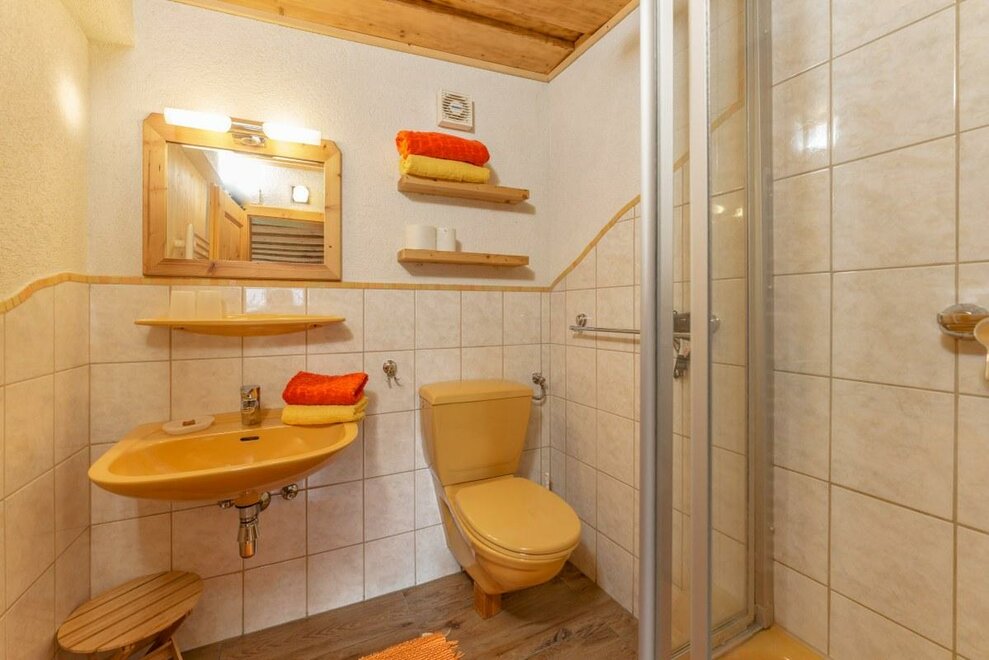 Our family room "Grimmingblick" consists of 2 separate bedrooms which are connected by a door. The bathroom is equipped with shower, toilet and hairdryer.