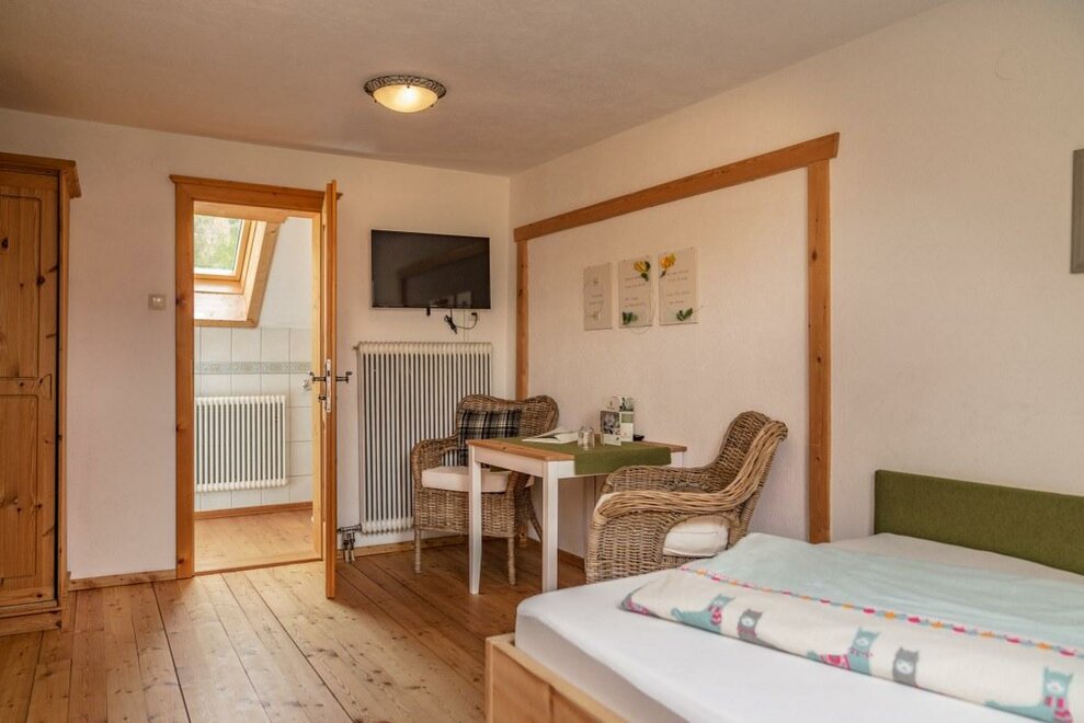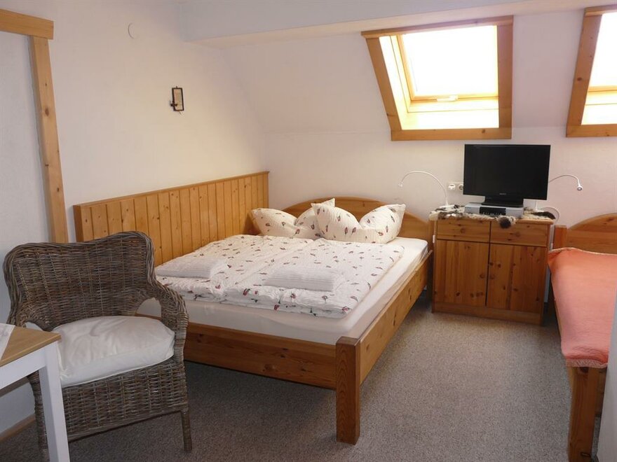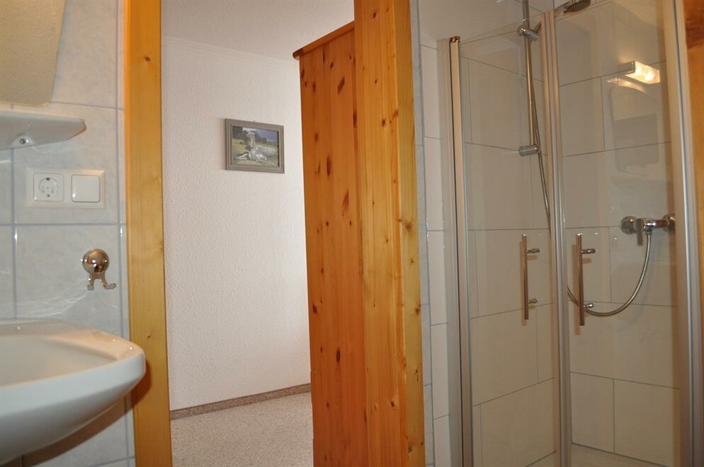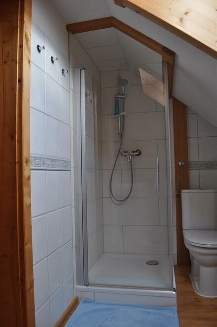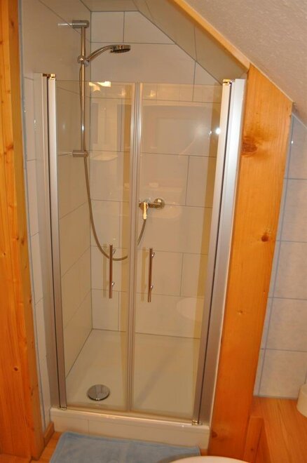 Our four bed room "Waldblick" is equipped with double bed and a bunk bed. The bathroom has a shower, toilet and hairdryer.