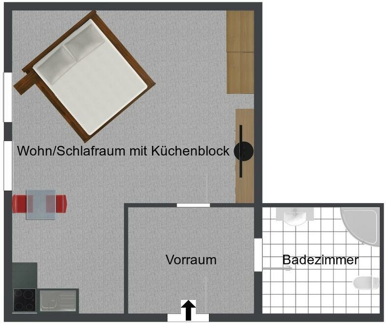 Apartment wit living-Sleepingroom mit kitchenette, bathroom with shower/toilett, SAT-TV, free WiFi