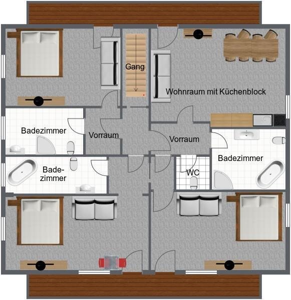 Apartment type E2: 6-8 people, approx. 140 m²
