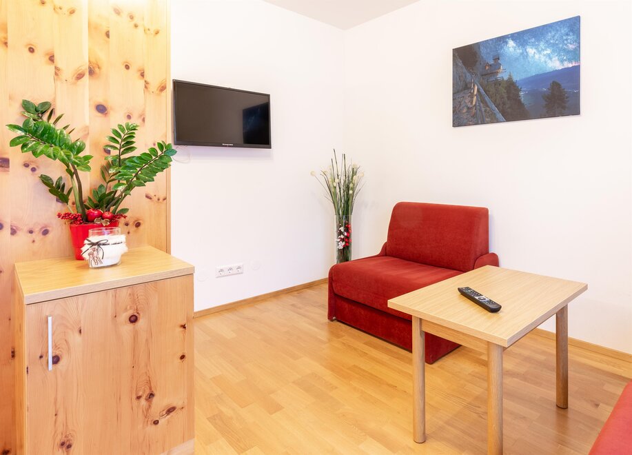 Apartment Reiteralm offers space for 4-8 persons with a size of 80m² and offers you every conceivable comfort. Equipment: »App. For 4-8 persons with approx. 80m² incl. Balcony »App. Are furnished with pine wood and oak parquet »1 double bedroom» 1 bedroom with 2 single beds (which can be pushed together) »living area with SAT TV and pull-out couch» 2 pull out comforters »kitchen with dining area» bathroom with shower, WC and infrared cabin »1 WC extra» 2 balconies »Free WIFI