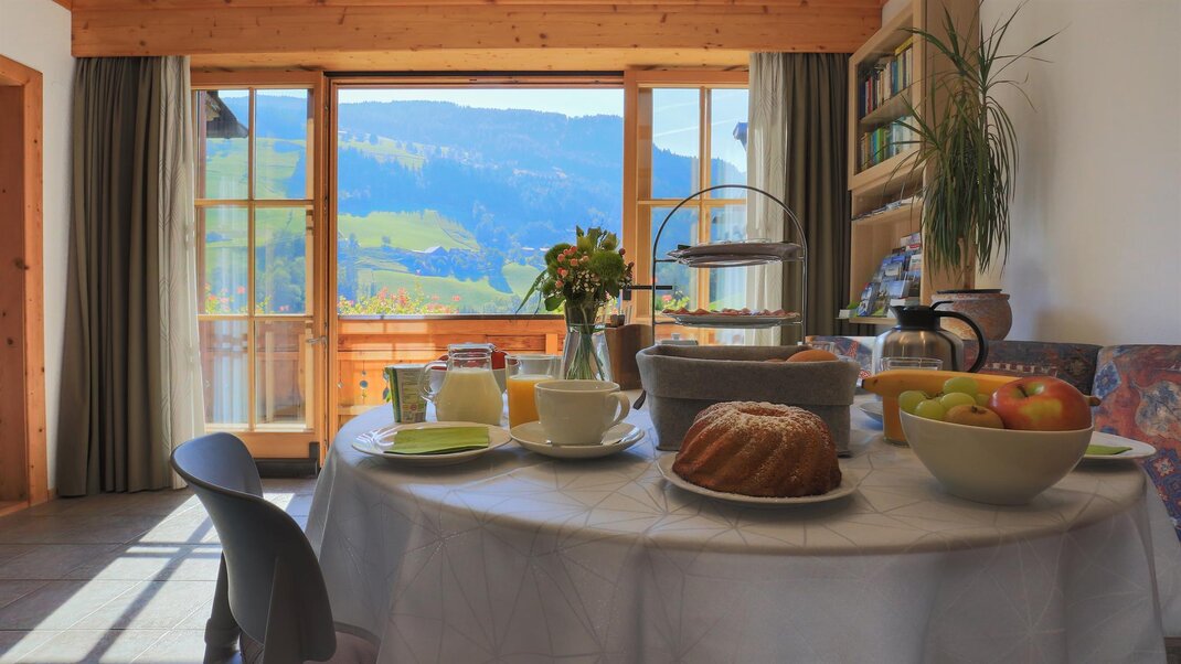 Enjoy your holiday in our completely furnished apartment with a fully equipped kitchen. Included are bed linen as well as towels, kitchen equipment with sponge, towel, cleaning soap and dishwasher tablets. In the bathroom there's shower gel, soap and toilet paper provided. Additionally you can rent bath robes (EUR 5,-/item) and have your textiles washed (EUR 5,-/washing machine up to 5kg, EUR 5,-/tumble drier, disclaimed liability). There's a Cafissimo coffee machine available, different kinds of coffee can be bought with us. The apartment is equipped with a minibar, with common refreshing drinks as well as alcoholics. On request we serve a well chosen breakfast buffet to the apartment, also vegetarian or vegan or in a power-skier-variant. Use of the garden with deckchairs or the gas-bbq is included.