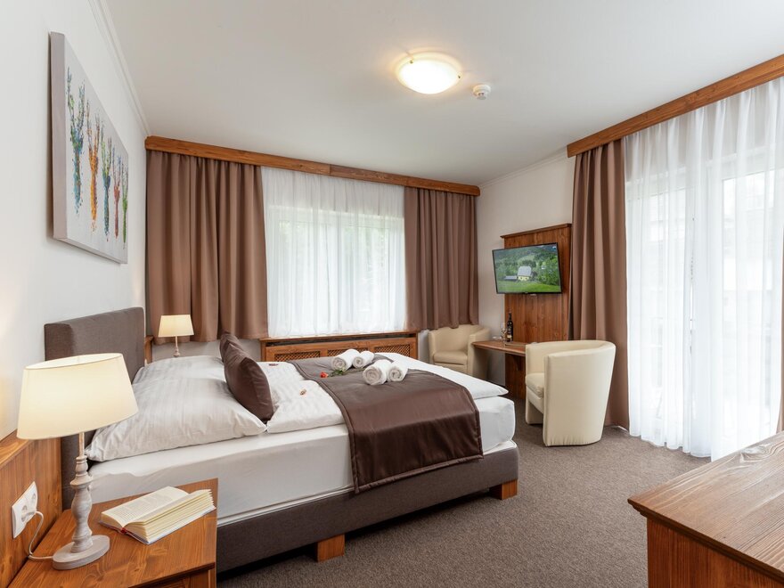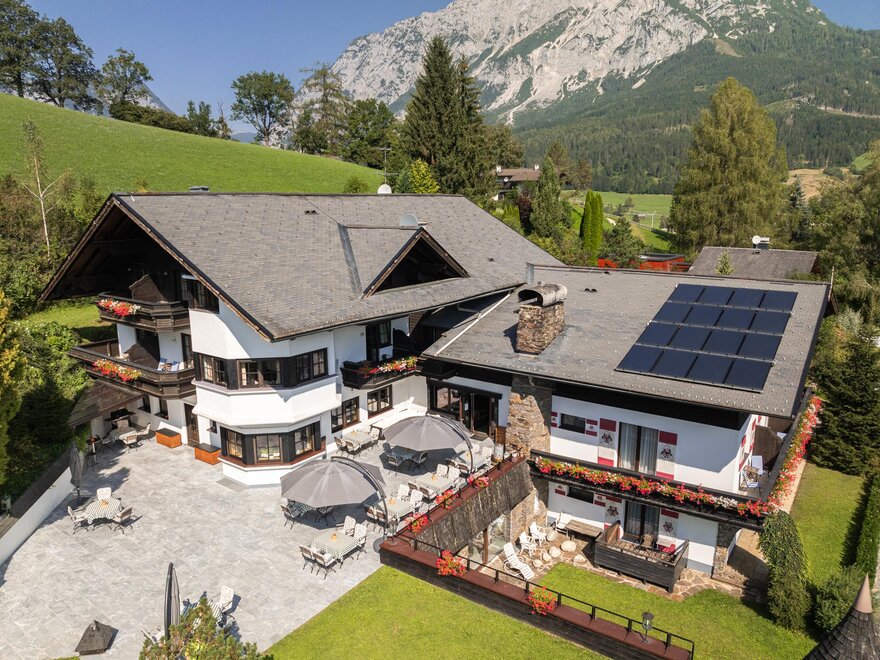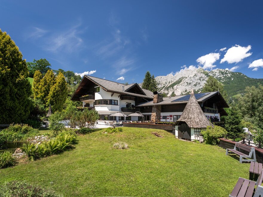 Our 4**** hotel in the Region Gröbminger Land is your paradise for Skiiing, hiking, biking, adventure; golf and gourmet. Enjoy our lovely rooms, Bio-Suites, Restaurant with Alpe-Adria cooking, sauna, steaming-bath, infrared cabin, tepidarium and a seminar room. Our smokeless hotel has 20 rooms!