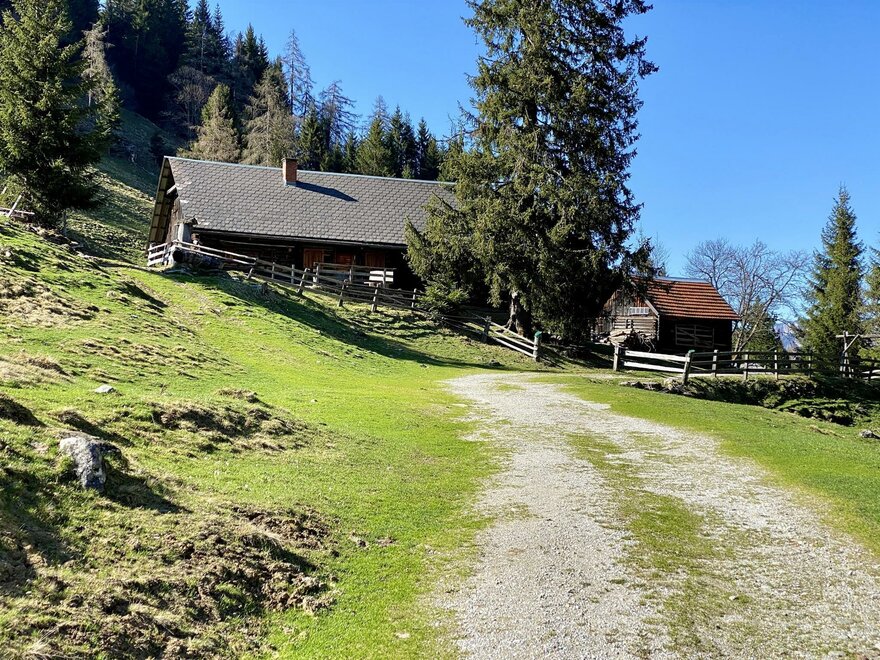 Our Maierlalm offers space for up to 8 people, divided into a bedroom with a double bed, a bedroom with a single bed and bunk beds and a dormitory with a hay bed for 3 people (please bring a sleeping bag). Cosy hours can be spent in the parlour or on the terrace. The traditional farmhouse kitchen with table cooker is of course not to be missed, although there is also another kitchen with hotplates, fridge and kettle. The bathroom is equipped with a shower and washbasin. As befits a proper mountain hut, the outhouse is located outside the hut.