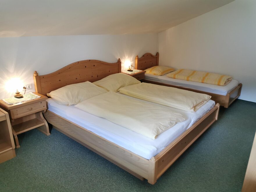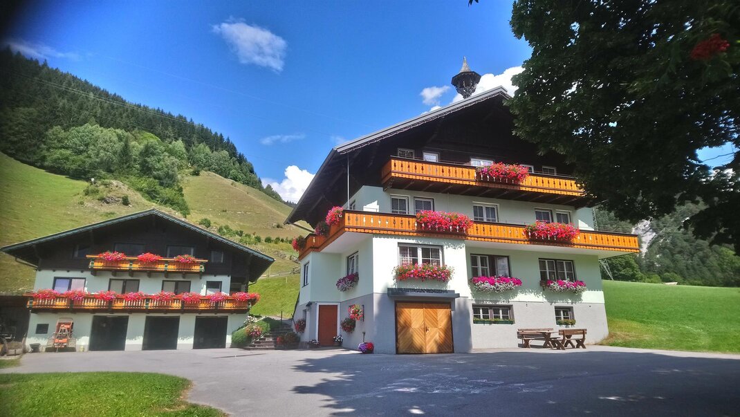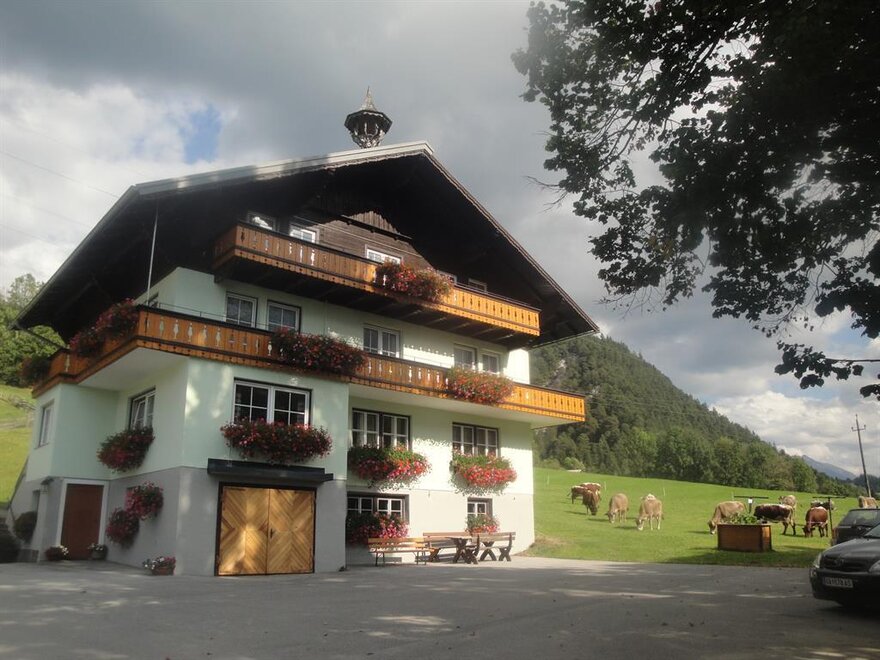 Our slightly elevated, sunny farm in Mandling has 8 comfortable rooms for 2-3 people each and 2 apartments for 4 or 5 people. We run an organic farm with dairy cows and are a child-friendly business.
