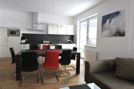 The spacious, bright apartments feature large panoramic windows and huge terraces with stunning views of the Hochwurzen and Planai mountains. The "Modern Art" apartment building is within walking distance to the center of Schladming as well as the two cable car entry points "Planet Planai" and "Planai West". The apartments offer spacious, fully equipped kitchens with all the amenities. Amenities such as flat-screen TVs in all rooms, free Wi-Fi, infrared saunas, safes, and an elevator in the building are also available.