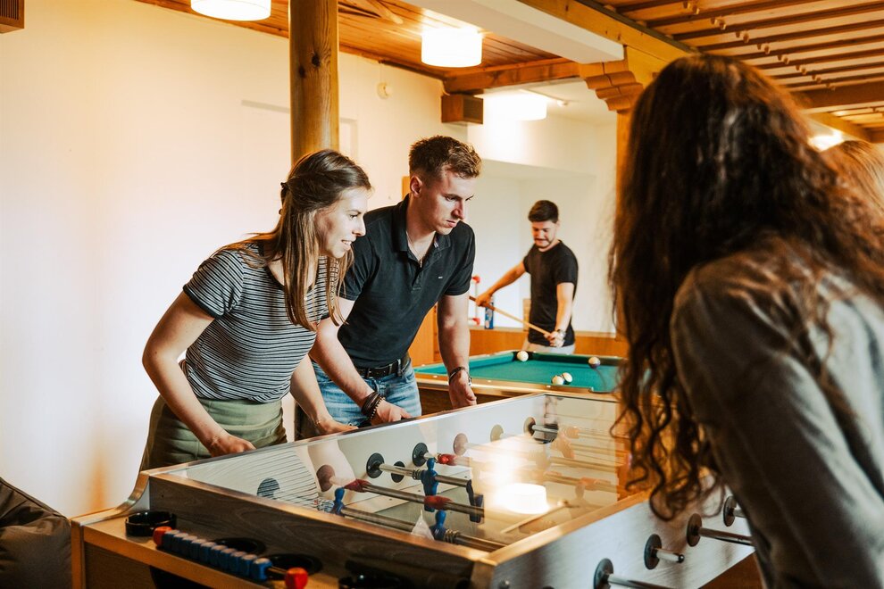 Our rooms invite you to a cozy get-together. You can play billiards and table football in the youth room. This guarantees fun. There is also enough space for those who want to withdraw and you can enjoy the fascinating view of the Planai from inside.