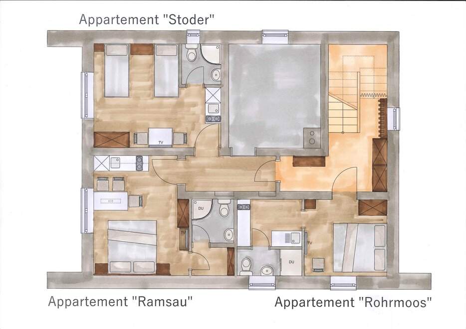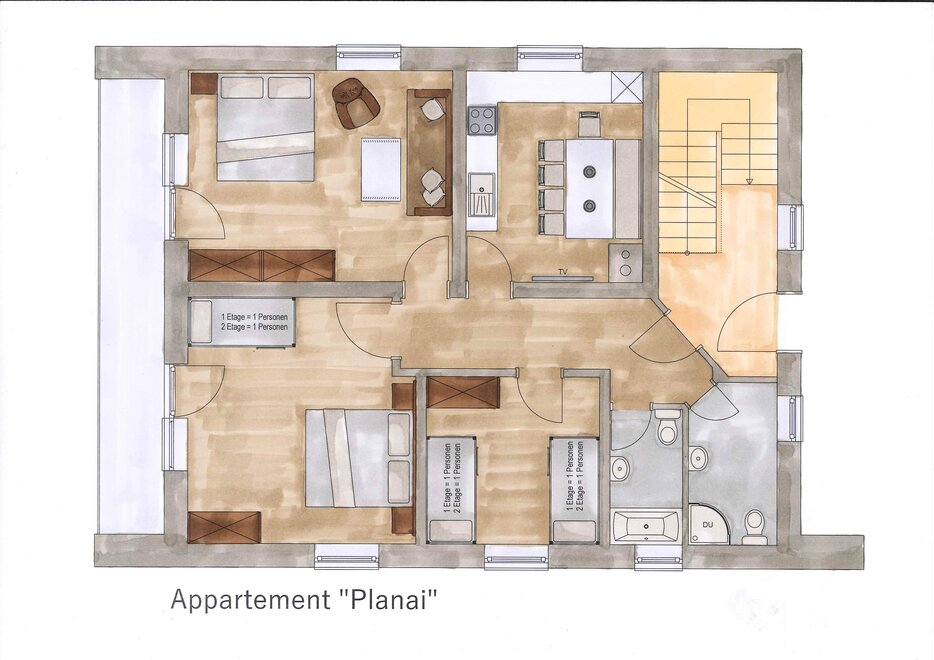 3 bedrooms / 2 bathrooms,WC,free Wi-Fi,Coffemaschine,microwave,fridge,2 Tv