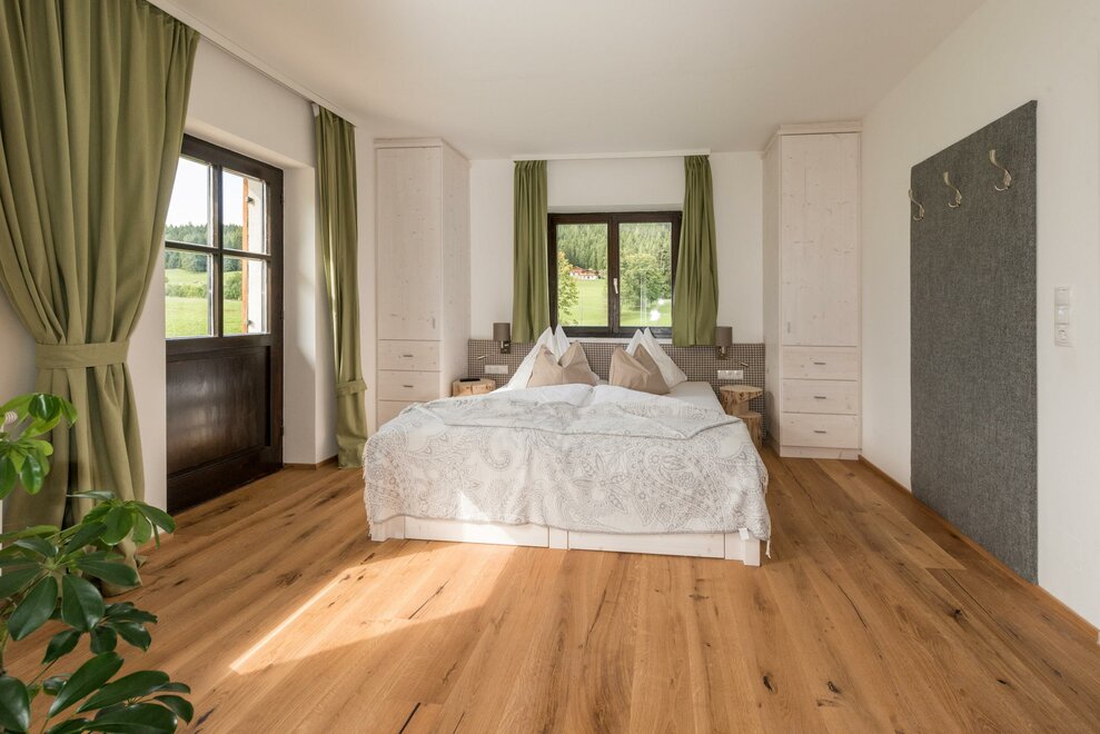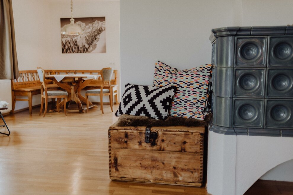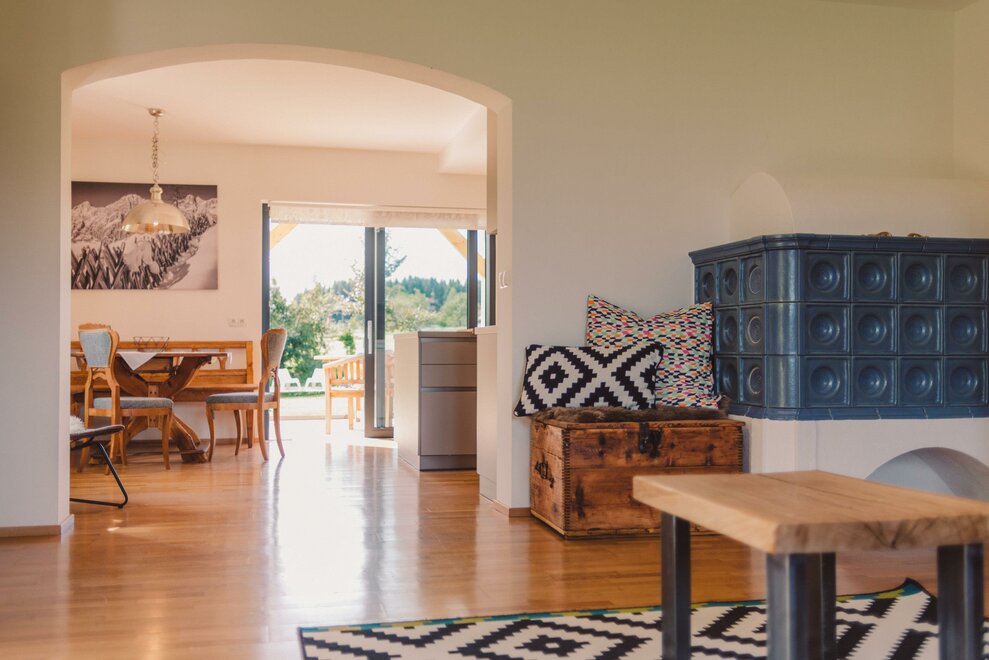 Spacious apartment with large garden, wood floors, tiled stove, loden materials, stylish and generous. Large south-facing living room with high-quality kitchen, dining table for up to 8 persons, 2 bedrooms with double bed, 2 bathrooms with WC, bathtub, private sauna, extra bed in the living room, sleeping couch for 2 persons, 2 cots additionally possible.