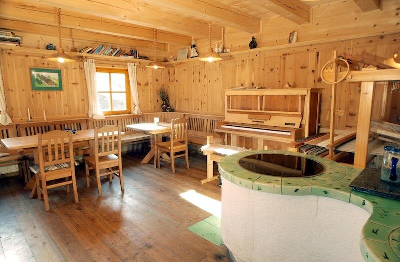 Biologically designed inn = main building includes a dining room, a sun terrace, a playroom, a small reception office, the main kitchen, an earth-vault cellar, as well as six holiday apartments with cooking facilities.