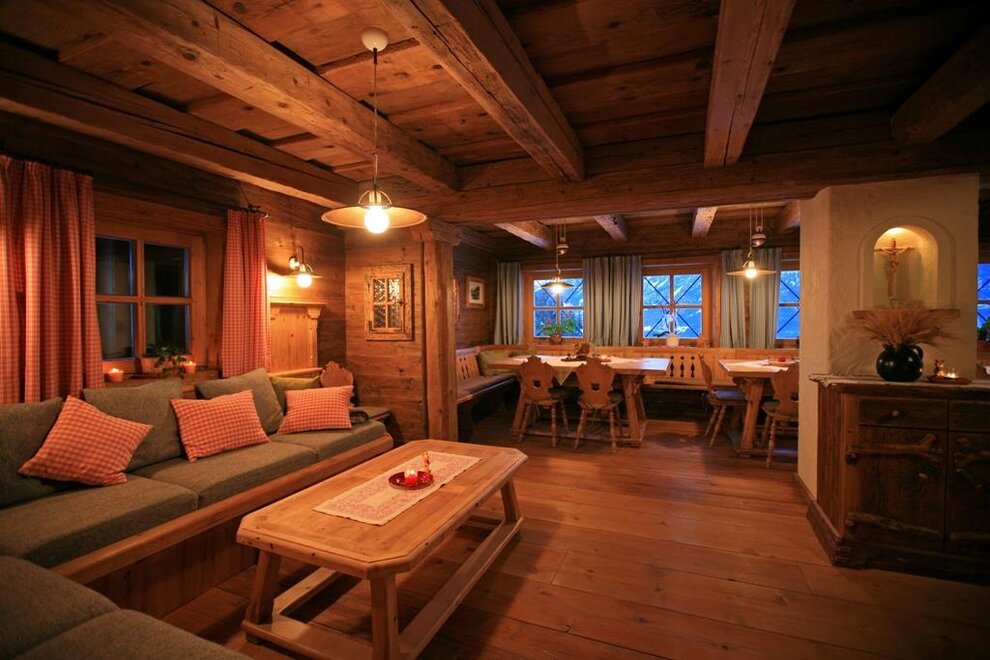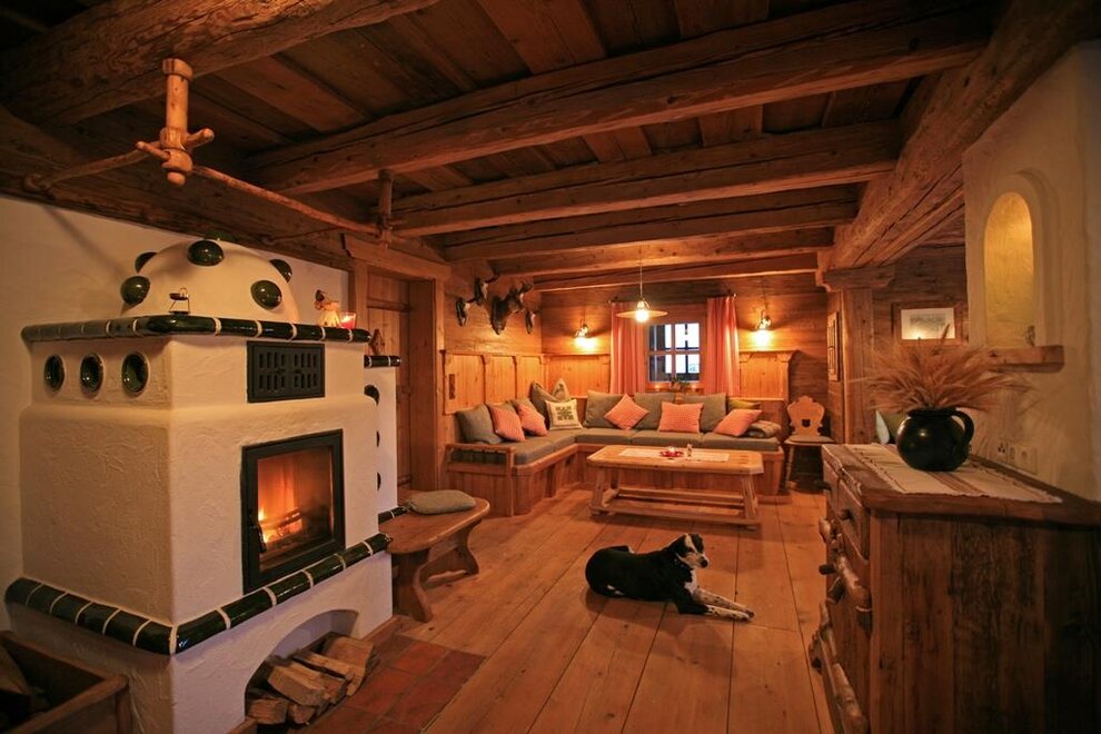 Restful nights are guaranteed by three double rooms with balconies, two triple rooms, and a children's room with a bunk bed – all meticulously crafted. Additionally, the farmhouse features three comfortable bathrooms and WCs, as well as a laundry room with a washing machine and dryer available for your use. The spacious kitchen — fully equipped with a refrigerator and freezer, dishwasher, electric stove, coffee maker, dishes and cutlery, and a wood-burning kitchen stove, etc. — brings you joy while cooking. Pure coziness awaits you in the tastefully furnished farmer's lounge (approx. 45 m²) with a tiled stove, cozy seating area, and large dining area. Sweat healthily! Pure relaxation in the Alps is provided by our new, rustic hut sauna. Cool off in the rain shower and let your day wind down in the relaxation area.