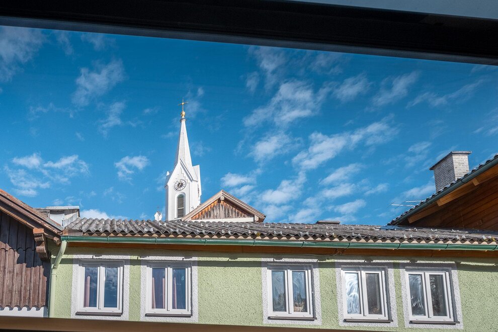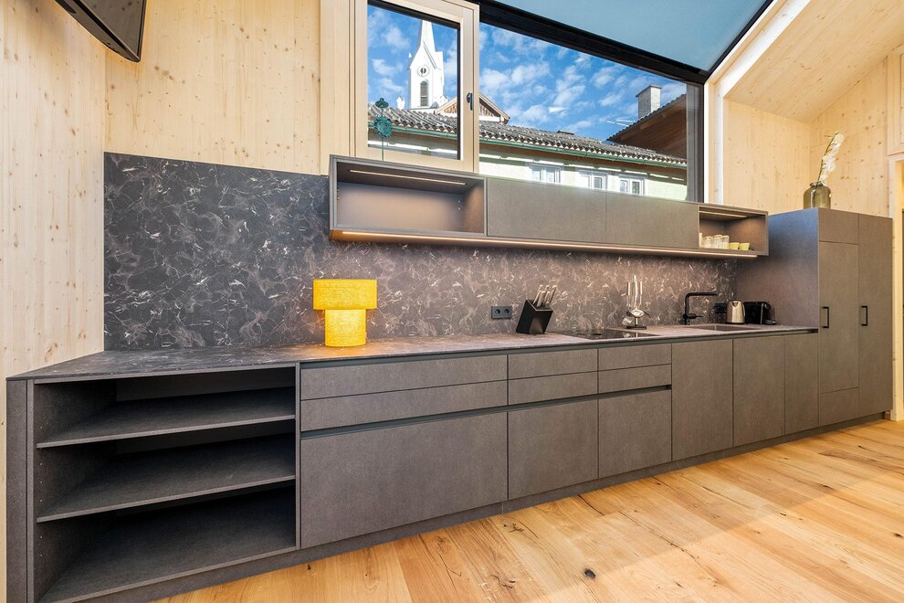 Panorama 198 – Schladming Tiny Living is an exclusive hideaway for those who appreciate design, comfort, and a central location. Right in the heart of Schladming, directly on Talbachgasse, you live in an urban yet quiet setting – with an impressive panoramic window and a direct view of the Protestant church tower of Schladming.