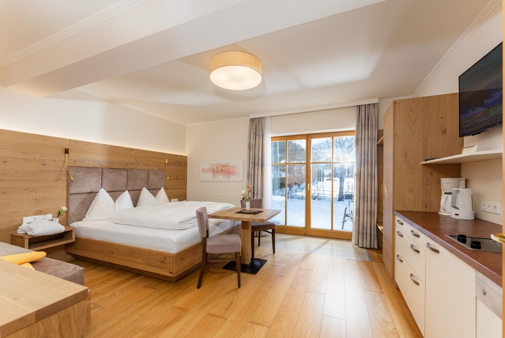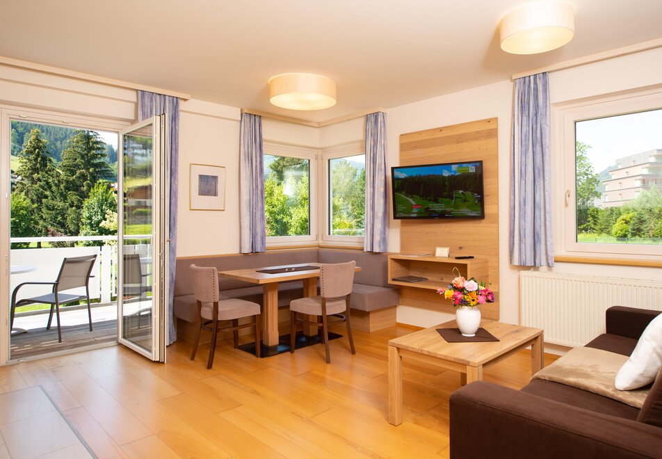 ... for your most valuable time of the year. Vacation accommodations (ca. 12,000 m²) in a quiet, sunny location near the congress ,the Planai ski station and town center. Tastefully furnished rooms & apartments in beautiful park area invite you to relax. FREE AT THE HOUSE: vital health island, 2 tennis courts, WLAN in each apartment, bike rental, table tennis, soccer, adventure swimmingpool (200 m) and a Romantic grill area.