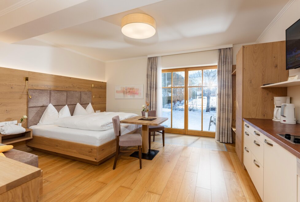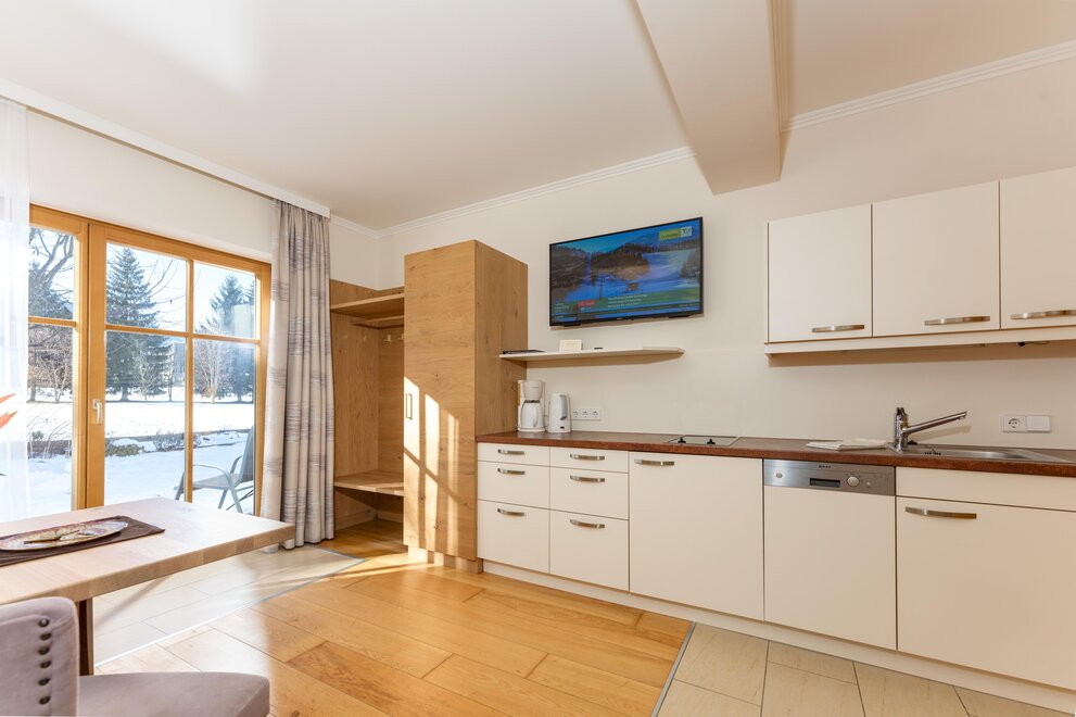 1-room apartment approx. 35 m², tastefully furnished - south-facing terrace, TV, safe, separate bath / WC, fully equipped kitchenette