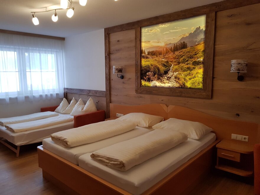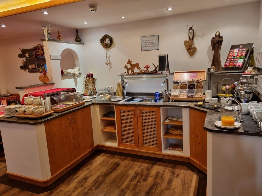 HOME-AWAY-FROM-HOME ! Our sunny location is magical, as are our lovingly furnished rooms and fully equipped apartments with bath and WC. To get your day of skiing off to a perfect start, we greet you with a lavish breakfast buffet, which you can enjoy in our winter garden with views of the slopes. For your evening relaxation, we offer a sauna area, which you can use free of charge (Finnish sauna, steam bath, plunge pool and quiet room). We are always easy to reach by car (no snow chains necessary), with ample parking available. Our guesthouse is a 4-minute walk from the Silverjet Reiteralm lift. We would be delighted to welcome you here as our personal guests.