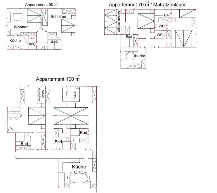 Our apartment is equipped with a comfortable living-room and of course a completely furnished kitchen. For 2-6 people, bedrooms and sleep-livingroom, bath, WC.
